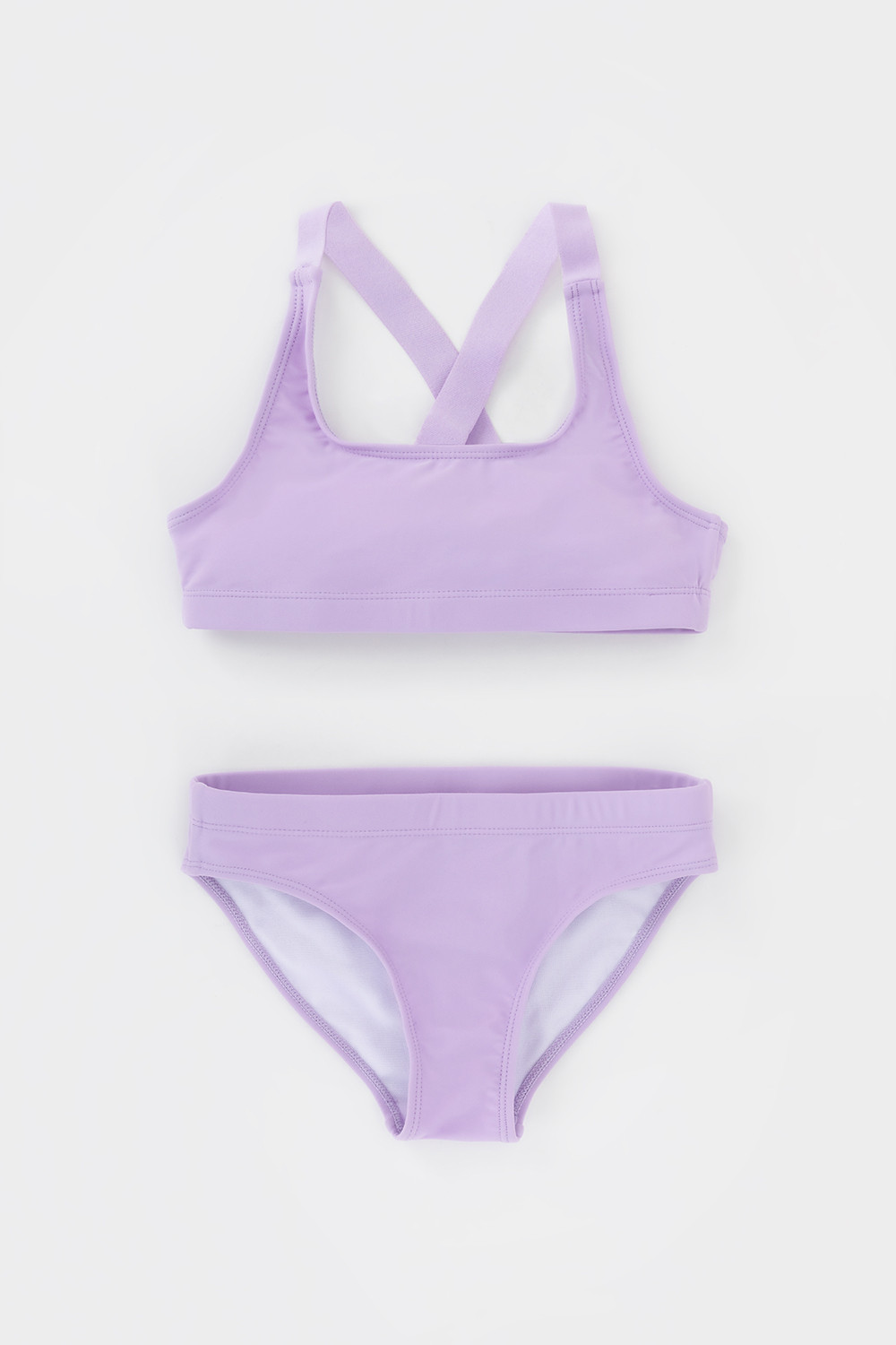 Раздельный купальник для девочки. Топ на эластичных лямках с регуляторами и плавки на резинке .