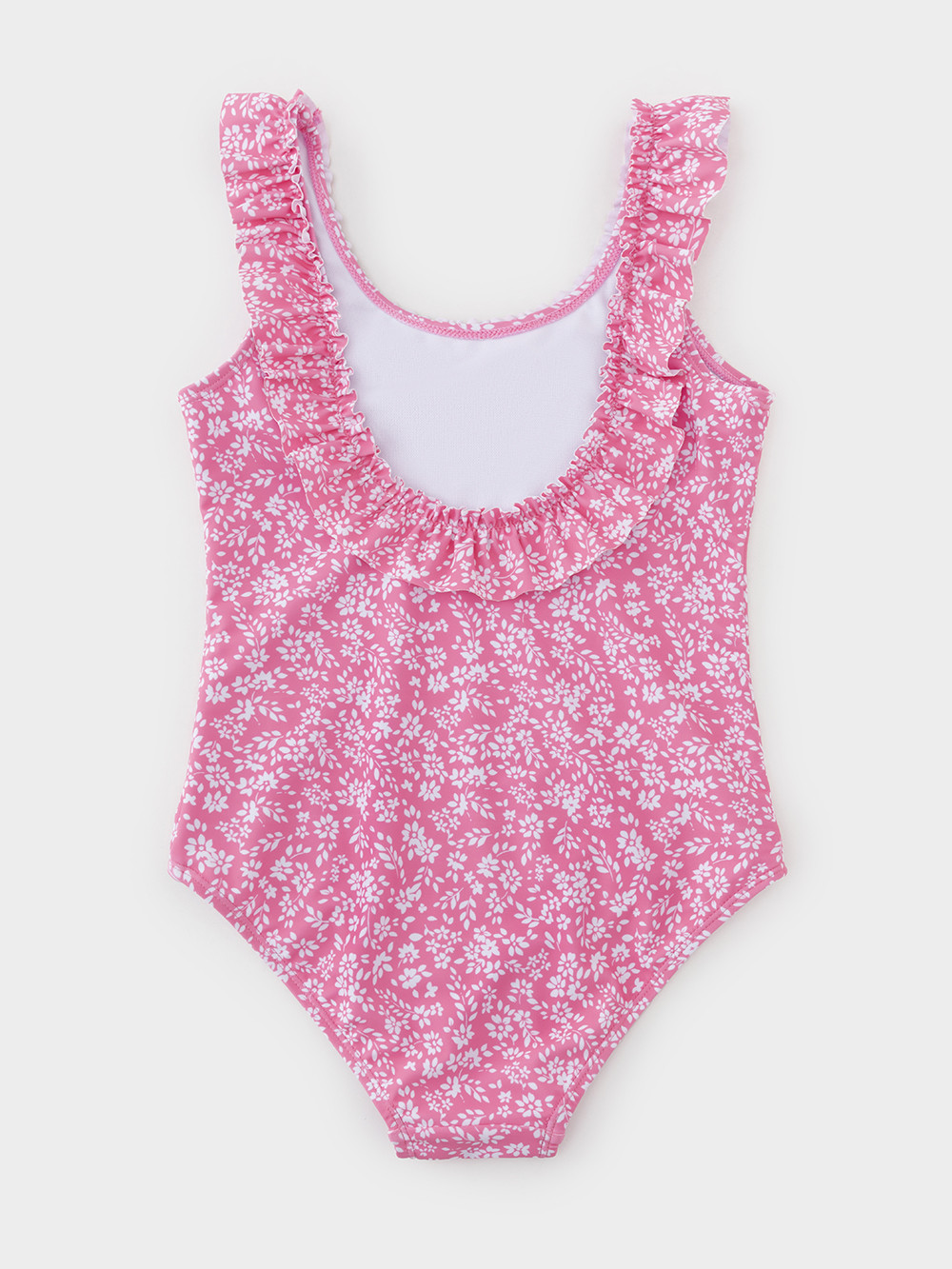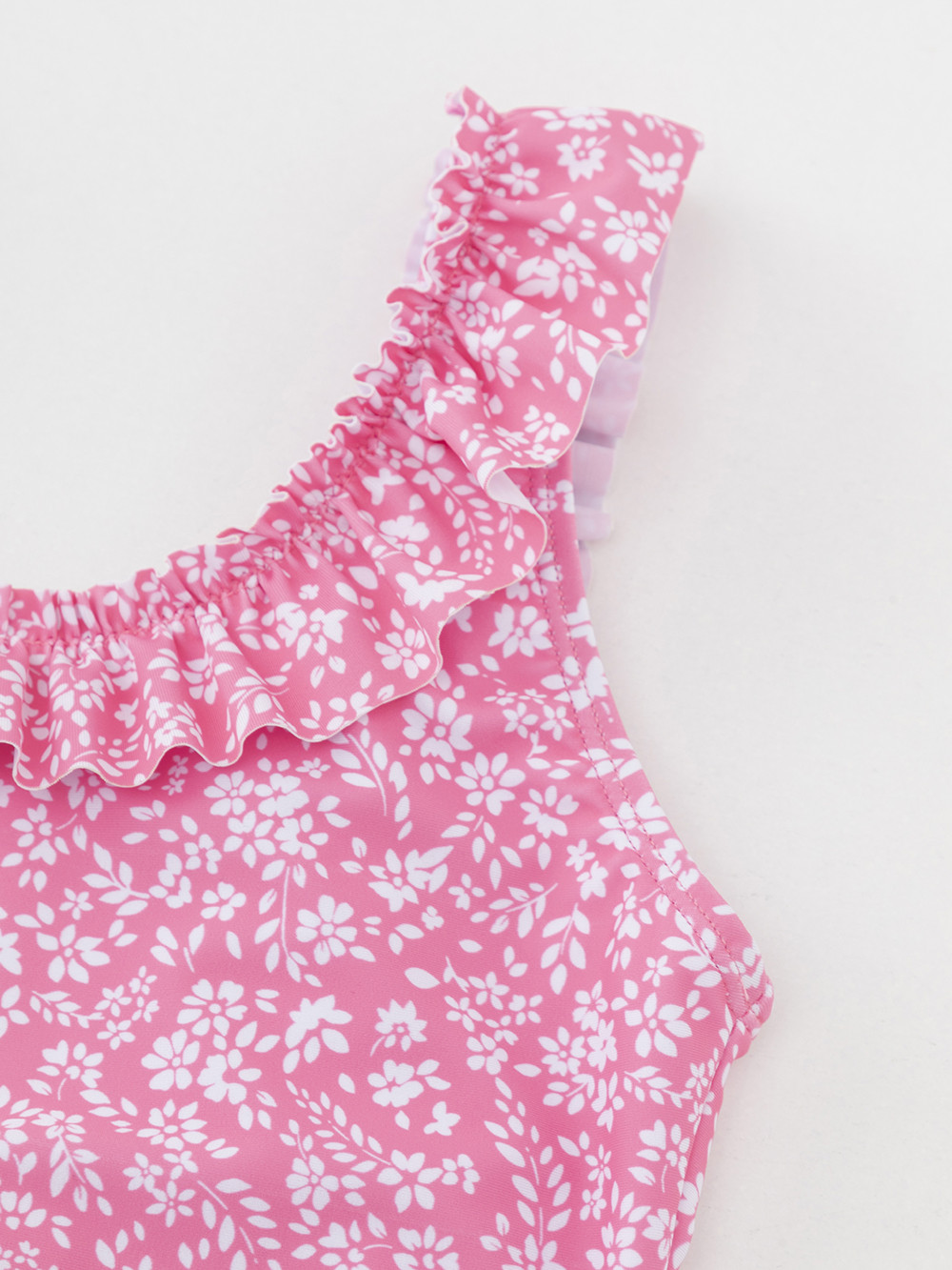 Слитный купальник на лямках для девочки. Украшен оборками. Внутри подклад. Оригинальная набивка выполнена из стойких гипоаллергенных красителей.