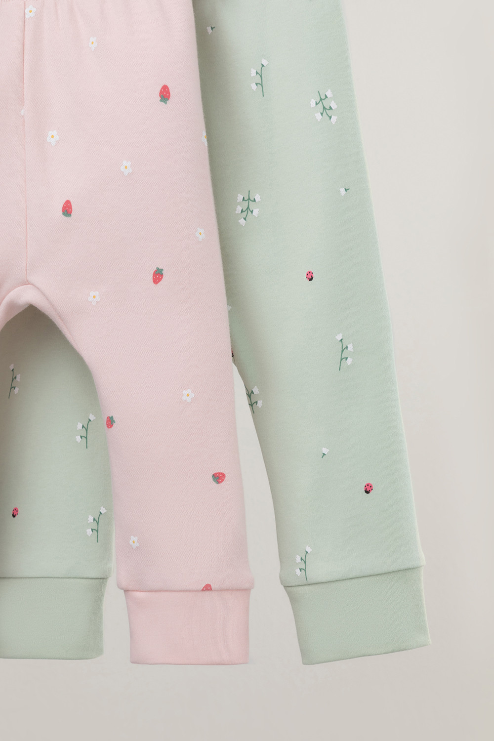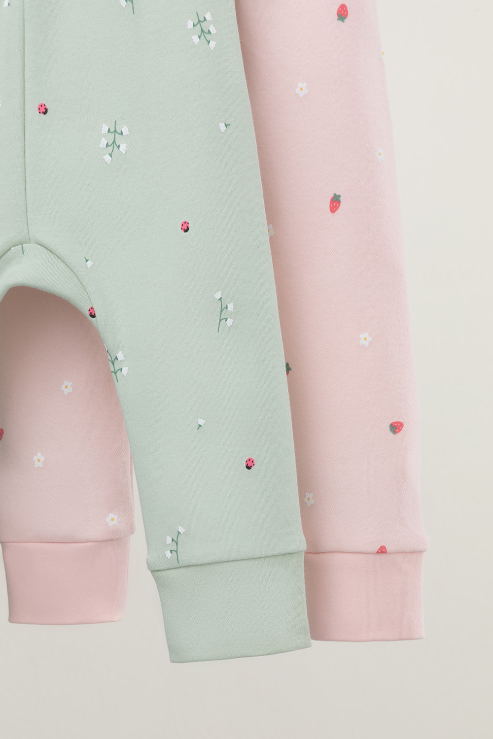 Брюки для новорождённых из мягкого эластичного трикотажа интерлок, произведённого из натурального хлопка. В упаковке 2 штуки. Пояс на резинке. Оригинальная набивка выполнена из стойких гипоаллергенных текстильных красителей. Все трикотажные полотна производятся в соответствии с нормами Швейцарского сертификата ЭкоТекс.