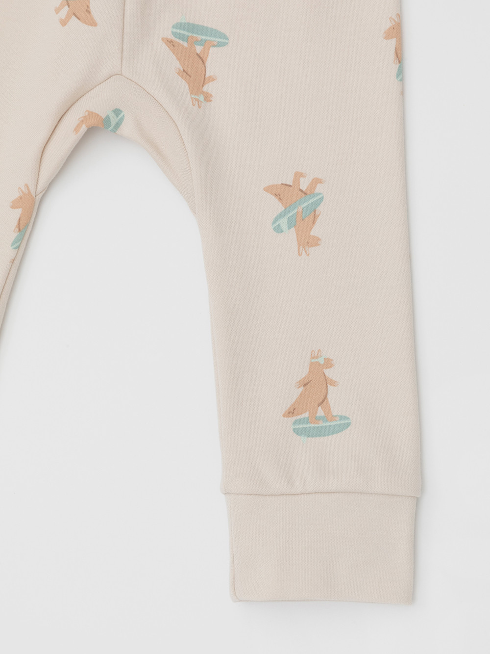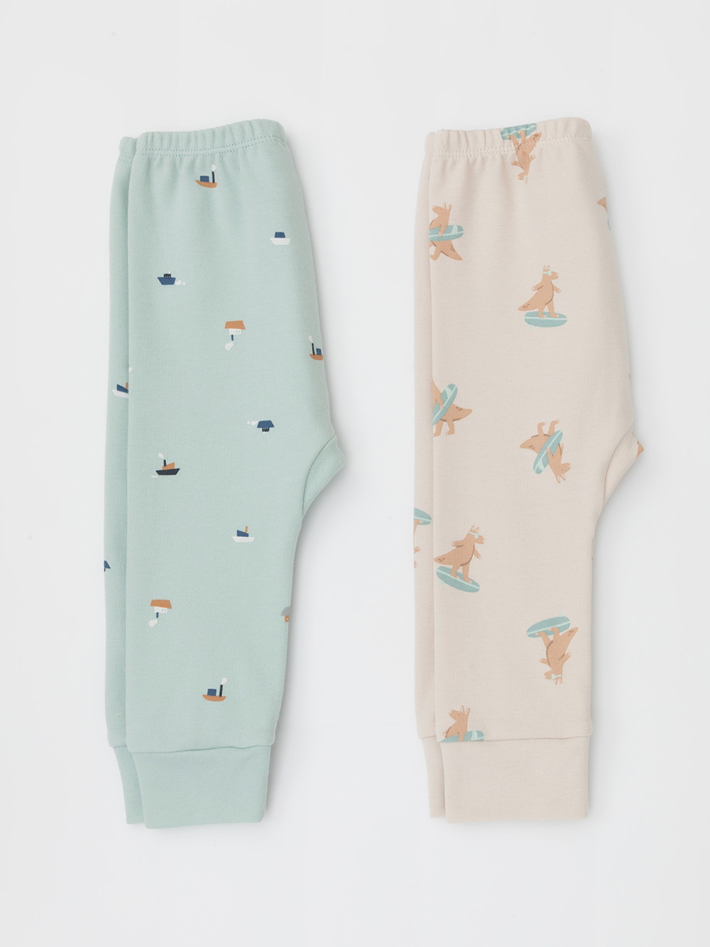 Брюки для новорождённых из мягкого эластичного трикотажа интерлок, произведённого из натурального хлопка. В упаковке 2 штуки. Пояс на резинке. Оригинальная набивка выполнена из стойких гипоаллергенных текстильных красителей. Все трикотажные полотна производятся в соответствии с нормами Швейцарского сертификата ЭкоТекс.