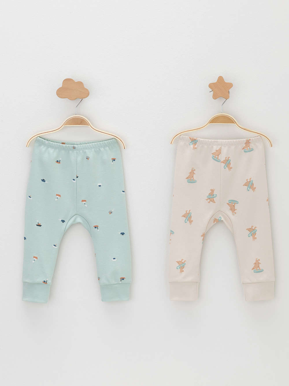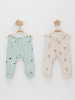 Брюки для новорождённых из мягкого эластичного трикотажа интерлок, произведённого из натурального хлопка. В упаковке 2 штуки. Пояс на резинке. Оригинальная набивка выполнена из стойких гипоаллергенных текстильных красителей. Все трикотажные полотна производятся в соответствии с нормами Швейцарского сертификата ЭкоТекс.