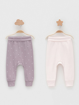 Брюки для новорождённых из мягкого эластичного трикотажа, произведённого из натурального хлопка. В упаковке 2 штуки. Пояс с отворотом на резинке. Все трикотажные полотна производятся в соответствии с нормами швейцарского сертификата ЭкоТекс.