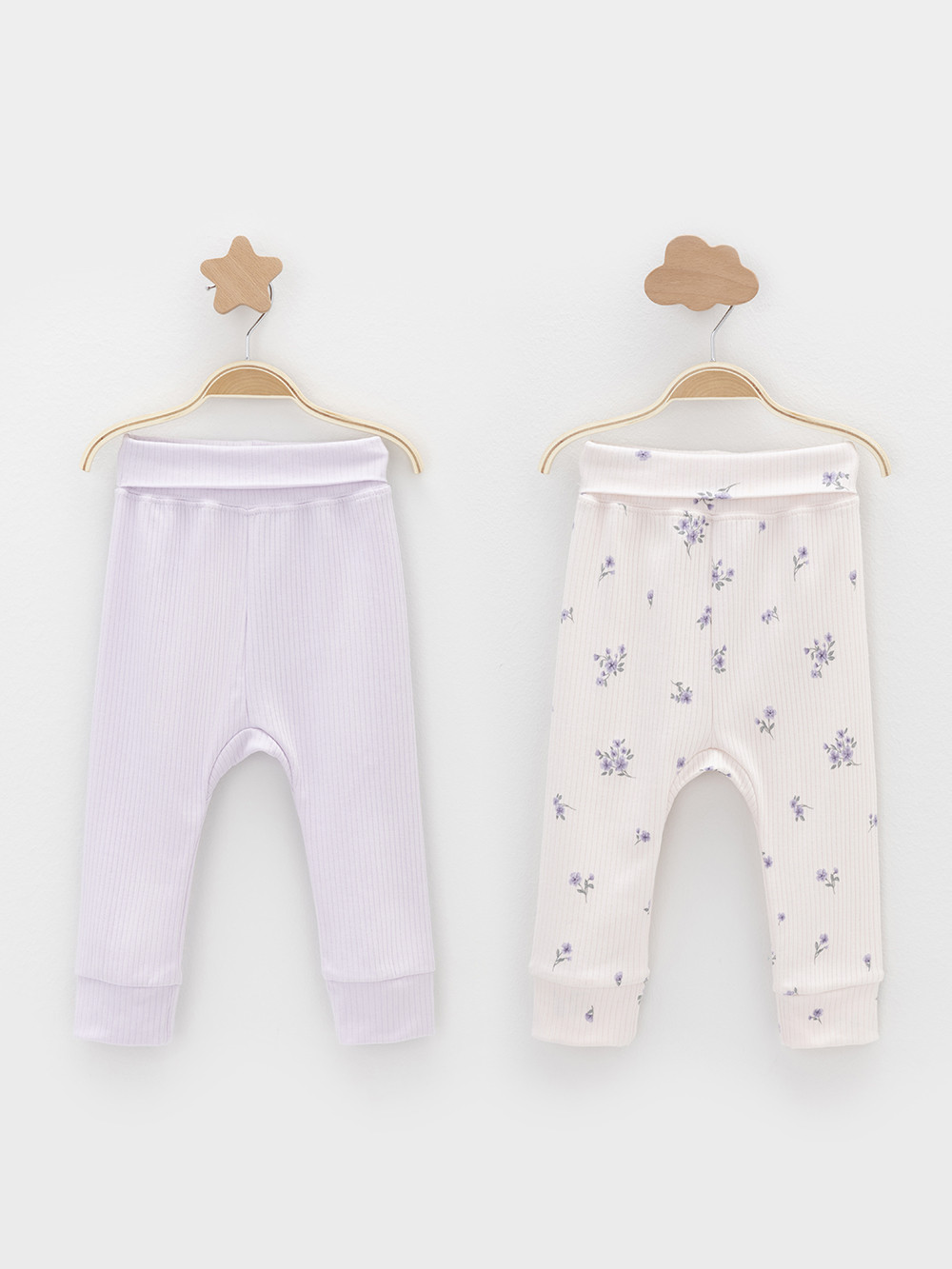 Брюки для новорождённых из мягкого эластичного трикотажа, произведённого из натурального хлопка. В упаковке 2 штуки. Пояс с отворотом на резинке. Все трикотажные полотна производятся в соответствии с нормами швейцарского сертификата ЭкоТекс.