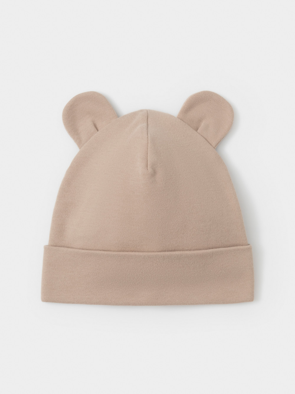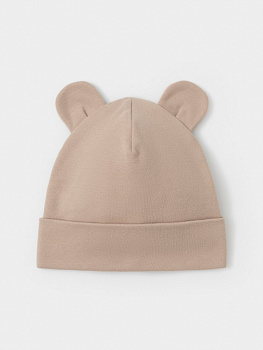 Шапка с отворотом для новорождённых из мягкого эластичного трикотажа интерлок, произведённого из натурального хлопка. Украшена декоративными ушками. Все трикотажные полотна производятся в соответствии с нормами швейцарского сертификата ЭкоТекс.