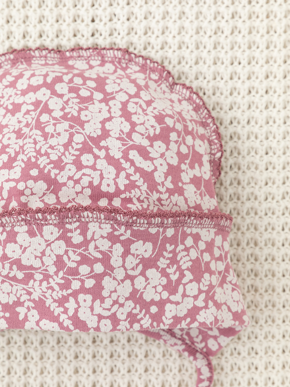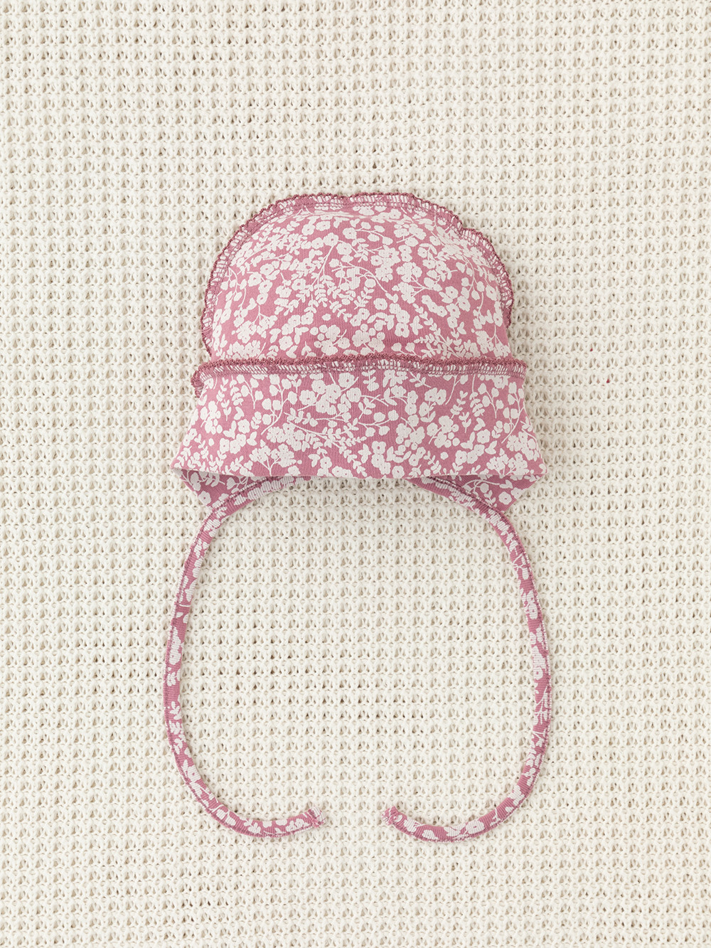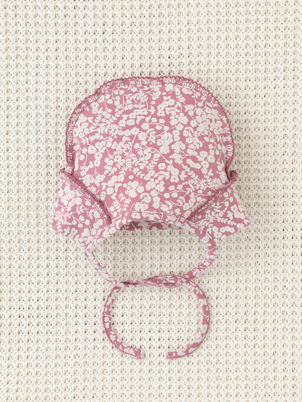 Шапочка на завязках для новорождённых. Изготовлена из мягкого эластичного трикотажа интерлок, произведённого из натурального хлопка. Все трикотажные полотна производятся в соответствии с нормами швейцарского сертификата ЭкоТекс.
