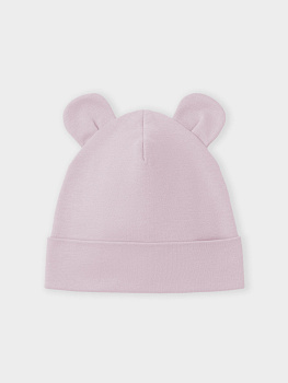 Шапка с отворотом для новорождённых из мягкого эластичного трикотажа интерлок, произведённого из натурального хлопка. Украшена декоративными ушками. Все трикотажные полотна производятся в соответствии с нормами швейцарского сертификата ЭкоТекс.