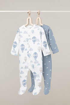 Комбинезоны для новорождённых из мягкого эластичного трикотажа, произведённого из натурального хлопка. В упаковке 2 штуки. Застёгиваются спереди на кнопки. В размере 56 на рукавах предусмотрены антицарапки, швы выполнены наружу. Оригинальная набивка выполнена из стойких гипоаллергенных текстильных красителей. Все трикотажные полотна производятся в соответствии с нормами Швейцарского сертификата ЭкоТекс.