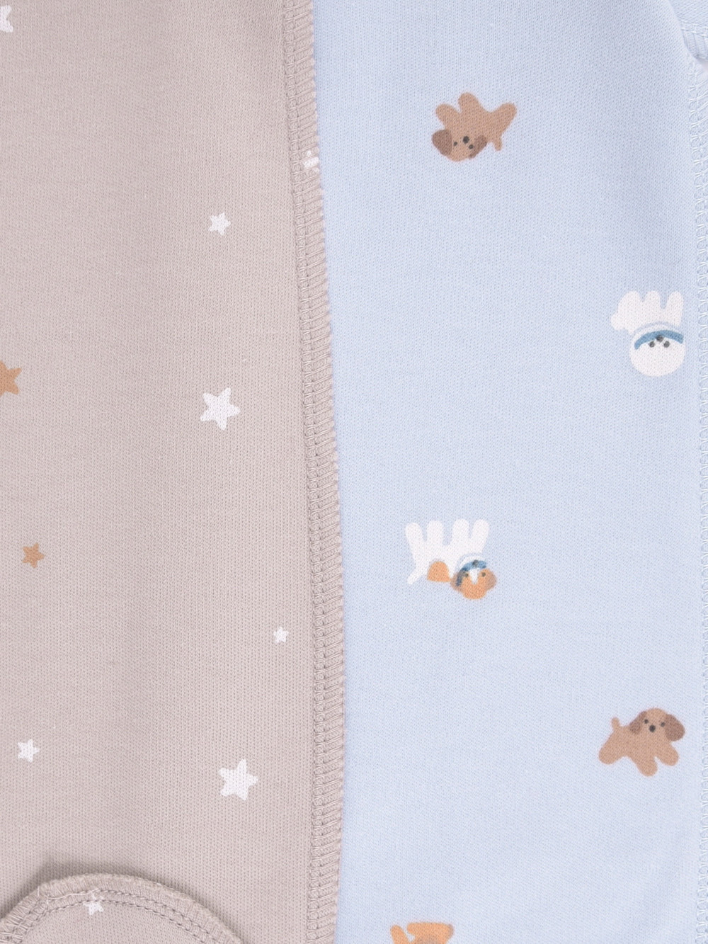 Комбинезоны для новорождённых из мягкого эластичного трикотажа, произведённого из натурального хлопка. В упаковке 2 штуки. Застёгиваются спереди на кнопки. В размере 56 на рукавах предусмотрены антицарапки, швы выполнены наружу. Оригинальная набивка выполнена из стойких гипоаллергенных текстильных красителей. Все трикотажные полотна производятся в соответствии с нормами Швейцарского сертификата ЭкоТекс.