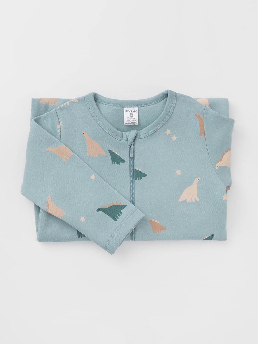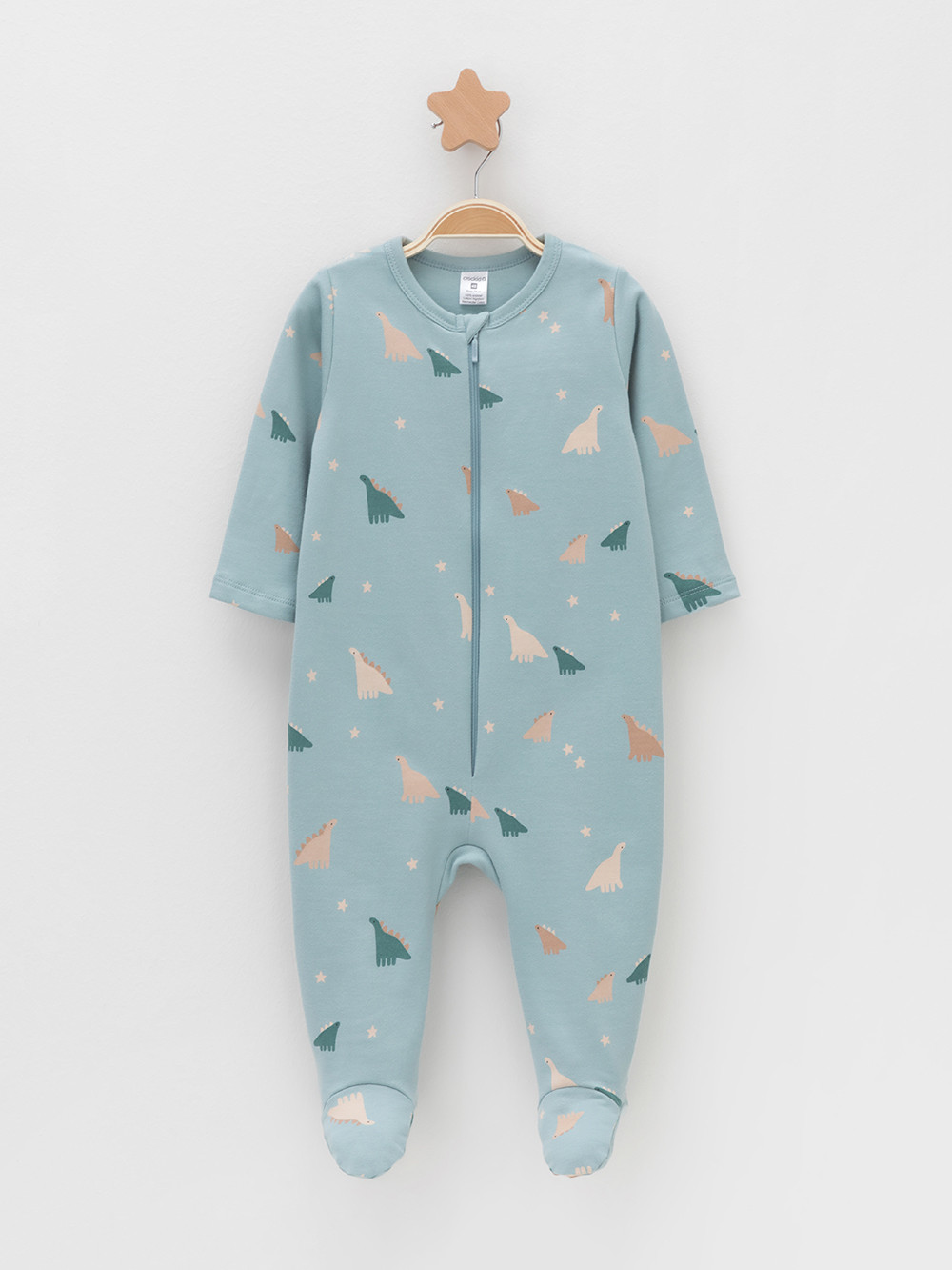 Комбинезон для новорождённых из тонкого футера с начёсом, произведённого из натурального хлопка. Застёгиваются спереди на молнию с мягкой защитой шеи и подбородка. Оригинальная набивка выполнена из стойких гипоаллергенных текстильных красителей. Все трикотажные полотна производятся в соответствии с нормами швейцарского сертификата ЭкоТекс.