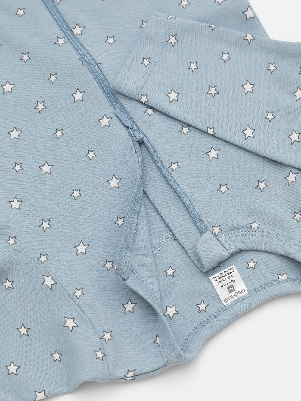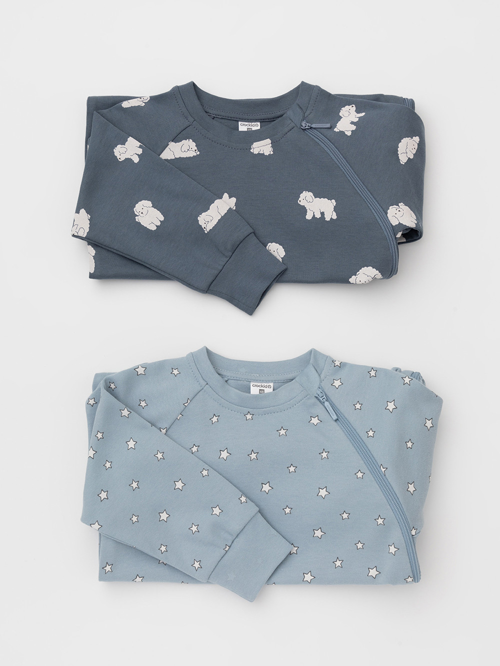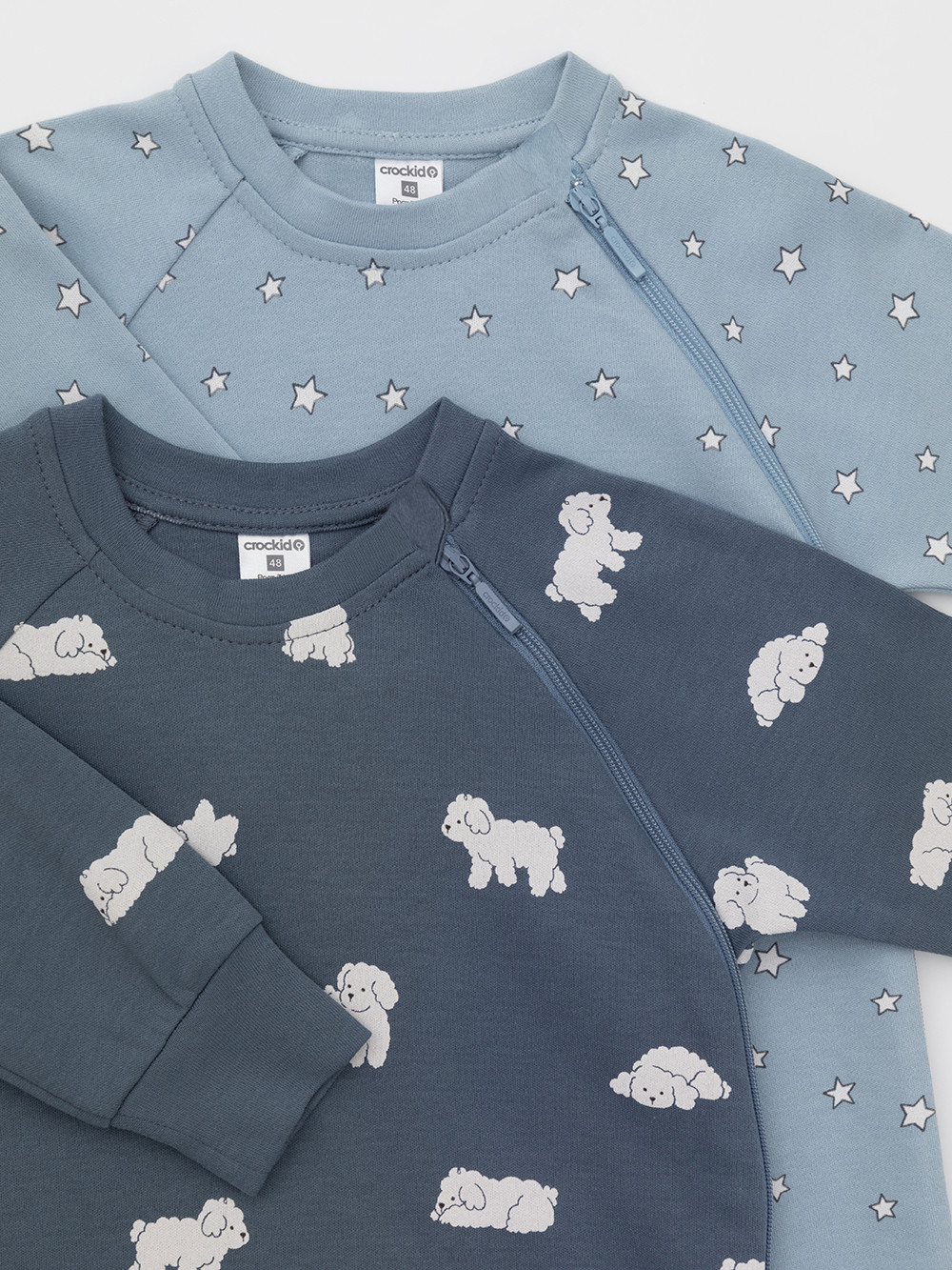 Комбинезоны для новорождённых из мягкого эластичного трикотажа интерлок, произведённого из натурального хлопка. В упаковке 2 штуки. Застёгиваются сбоку на молнию с мягкой защитой шеи и подбородка. Длинные рукава-реглан оканчиваются манжетами. Оригинальная набивка выполнена из стойких гипоаллергенных текстильных красителей. Все трикотажные полотна производятся в соответствии с нормами швейцарского сертификата ЭкоТекс.