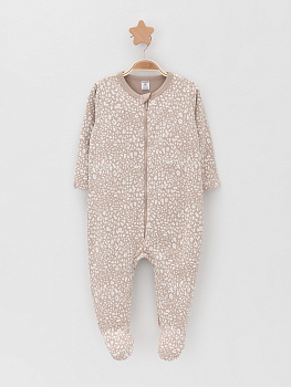 Комбинезон для новорождённых из тонкого футера с начёсом, произведённого из натурального хлопка. Застёгиваются спереди на молнию с мягкой защитой шеи и подбородка. Оригинальная набивка выполнена из стойких гипоаллергенных текстильных красителей. Все трикотажные полотна производятся в соответствии с нормами швейцарского сертификата ЭкоТекс.