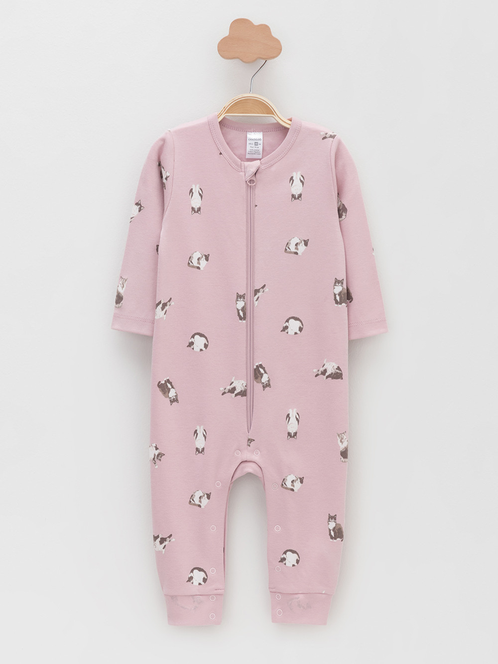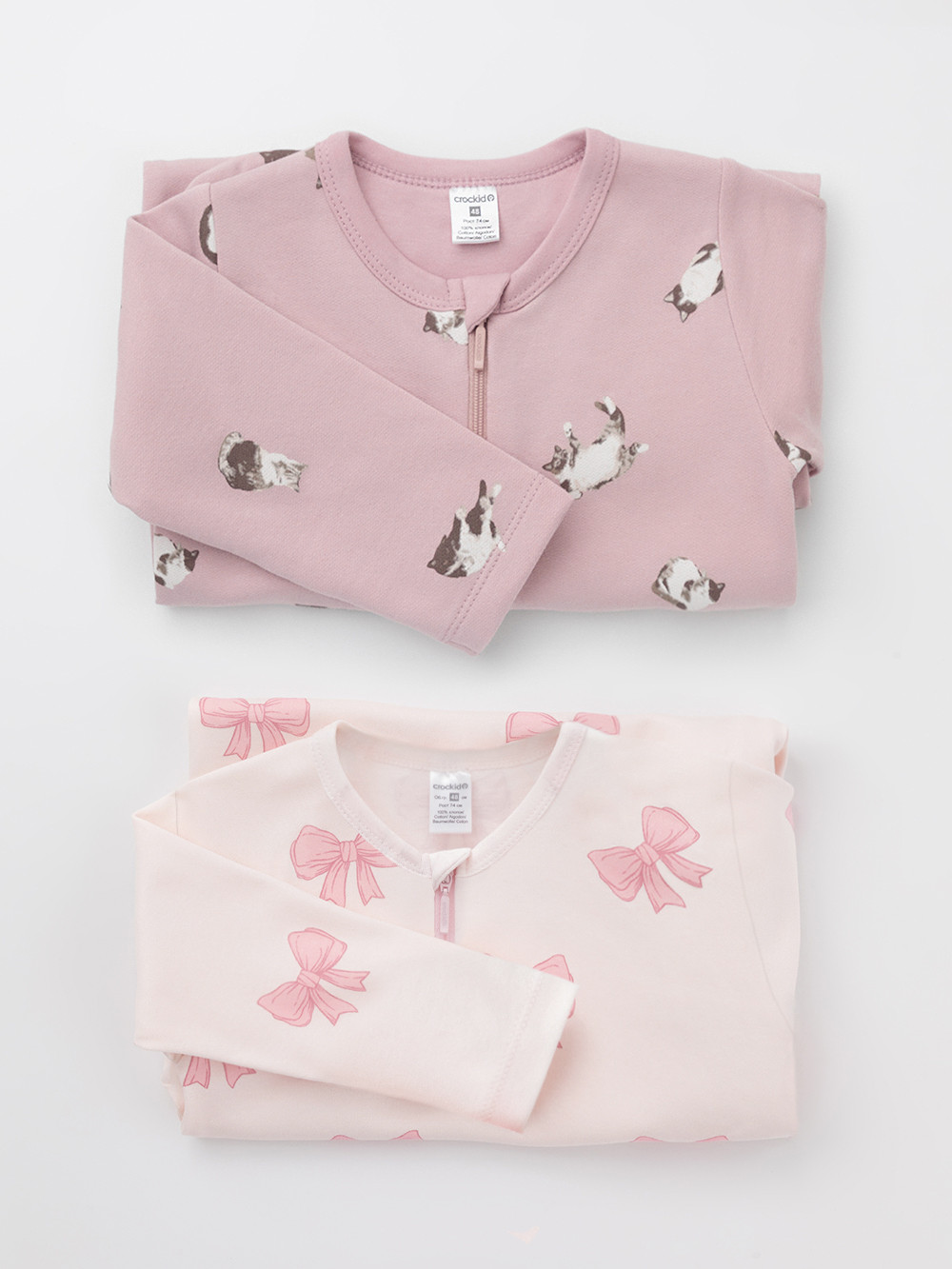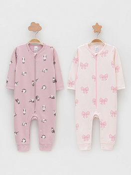 Комбинезоны для новорождённых из эластичного трикотажа, произведённого из натурального хлопка. В упаковке 2 штуки. Застёгиваются спереди на молнию с мягкой защитой шеи и подбородка. По шаговому шву застёжка на кнопки. Оригинальная набивка выполнена из стойких гипоаллергенных текстильных красителей. Все трикотажные полотна производятся в соответствии с нормами швейцарского сертификата ЭкоТекс.