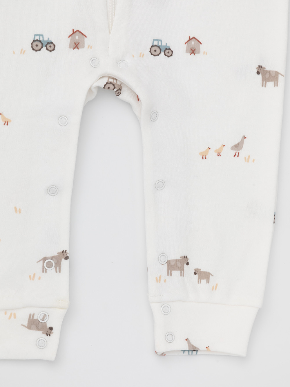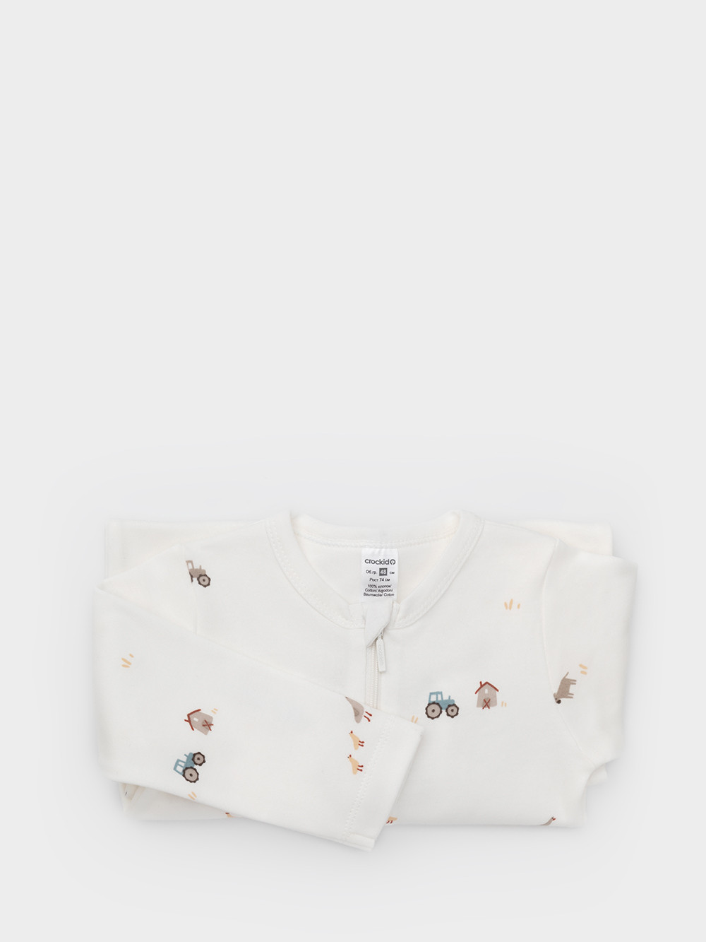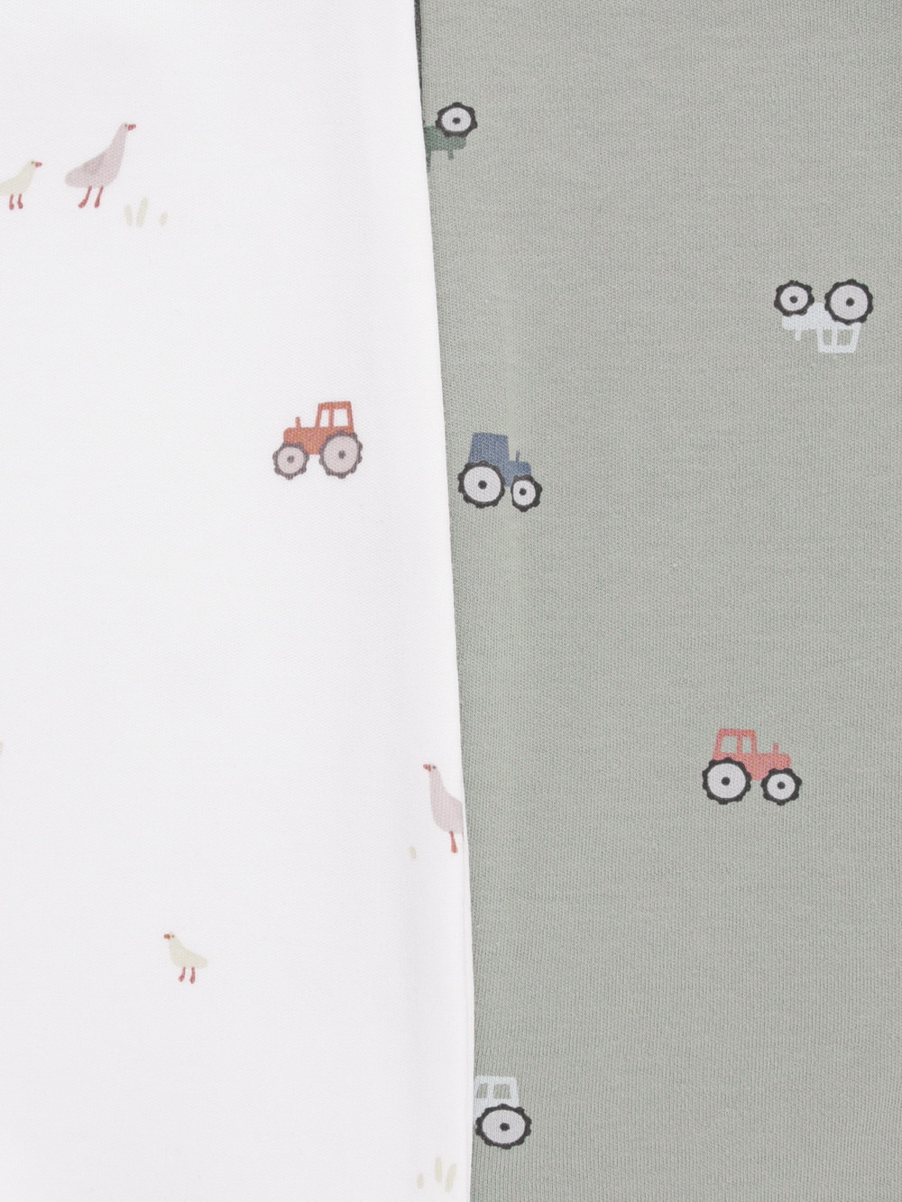 Комбинезоны для новорождённых из эластичного трикотажа, произведённого из натурального хлопка. В упаковке 2 штуки. Застёгиваются спереди на молнию с мягкой защитой шеи и подбородка. По шаговому шву застёжка на кнопки. Оригинальная набивка выполнена из стойких гипоаллергенных текстильных красителей. Все трикотажные полотна производятся в соответствии с нормами швейцарского сертификата ЭкоТекс.