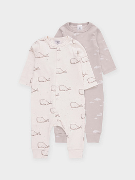 Комбинезоны для новорождённых из мягкого эластичного трикотажа, произведённого из натурального хлопка. В упаковке 2 штуки. Застёгиваются спереди на кнопки. Оригинальная набивка выполнена из стойких гипоаллергенных текстильных красителей. Все трикотажные полотна производятся в соответствии с нормами швейцарского сертификата ЭкоТекс.