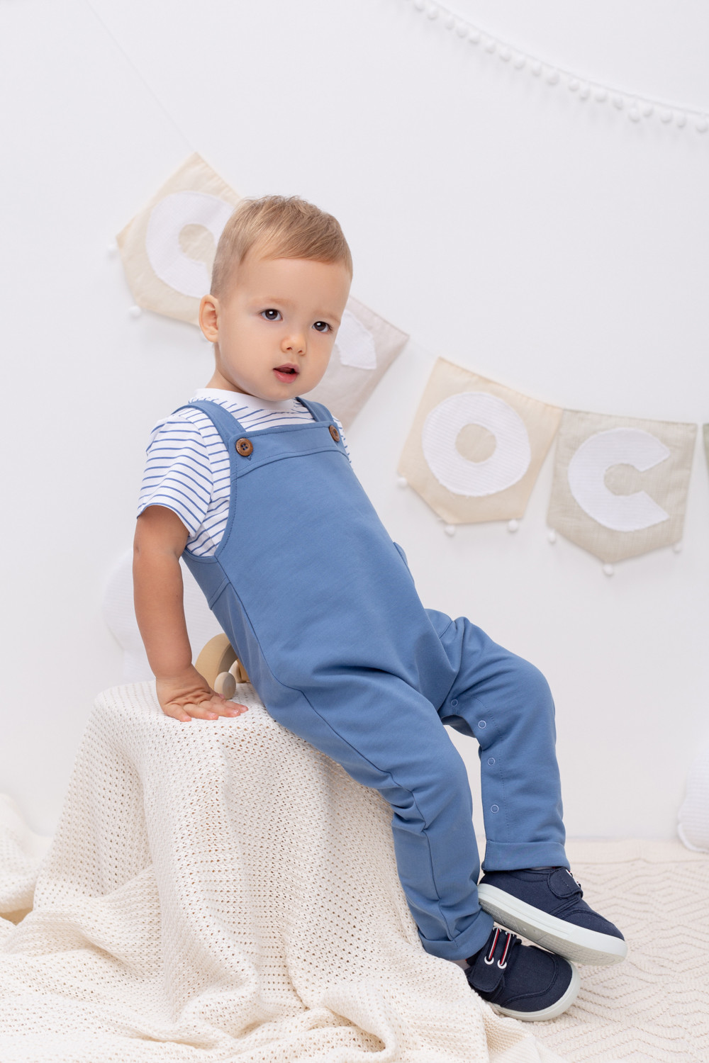 Комбинезон детский из петельчатого футера. Удобная застежка на лямках. Застежка на кнопки по шаговому шву.