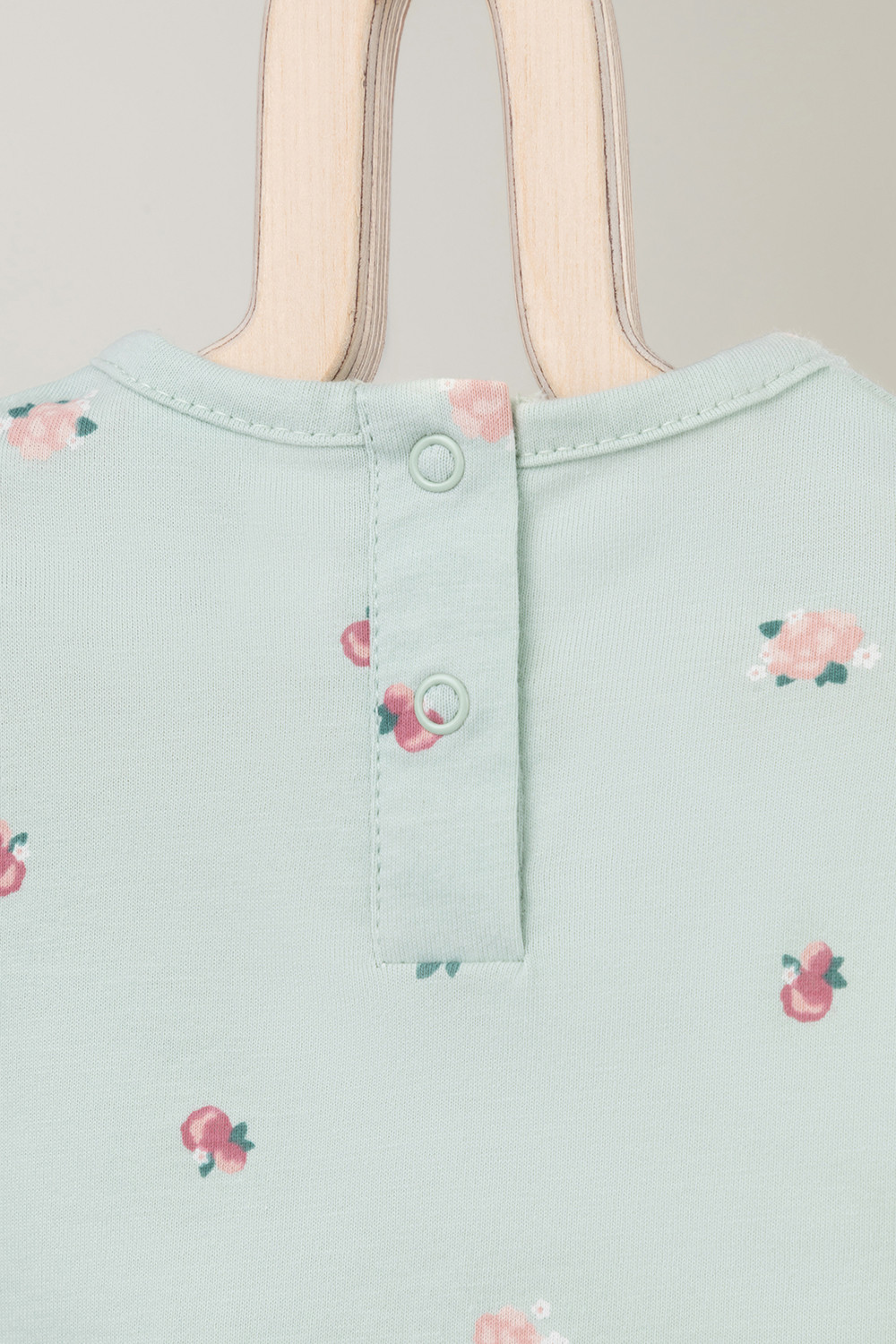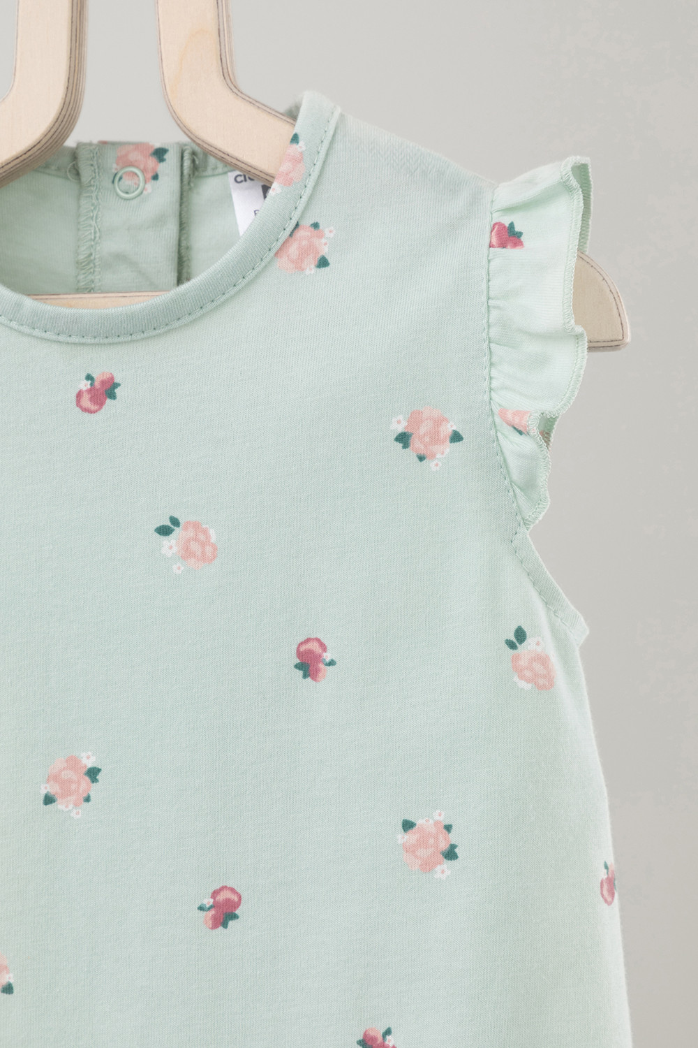 Лёгкий трикотажный песочник из высококачественного хлопка для девочки. Застёгивается на кнопки на спинке и по низу изделия. Верх украшен воздушными крылышками. Оригинальная набивка выполнена из стойких текстильных гипоаллергенных красителей. Изделие сохраняет цвет и форму после многократных стирок.