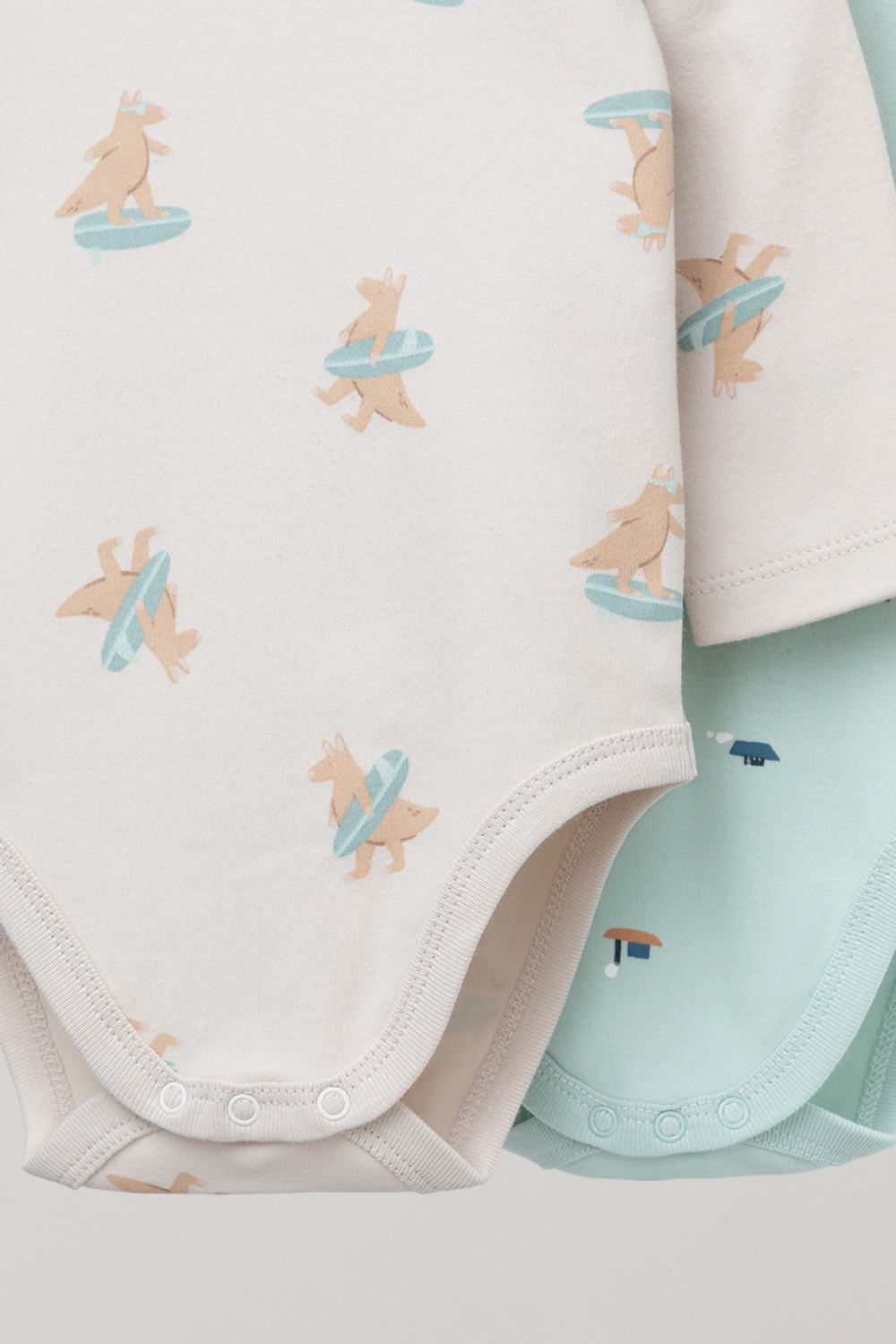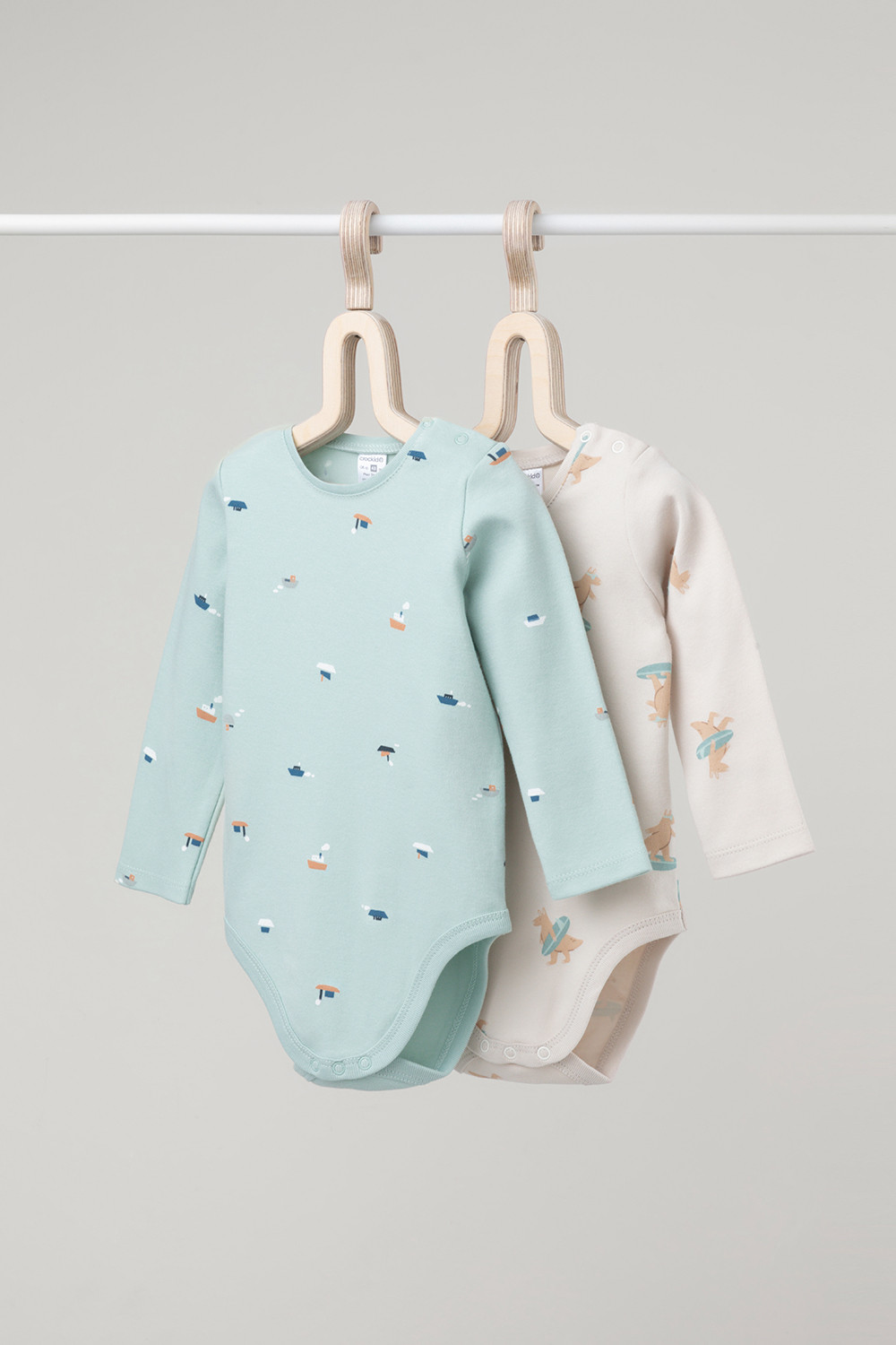 Боди для новорождённых из мягкого эластичного трикотажа, произведённого из натурального хлопка. В упаковке 2 штуки. Застёгиваются на кнопки на плече и по низу изделий. Оригинальная набивка выполнена из стойких гипоаллергенных текстильных красителей. Все трикотажные полотна производятся в соответствии с нормами Швейцарского сертификата ЭкоТекс.