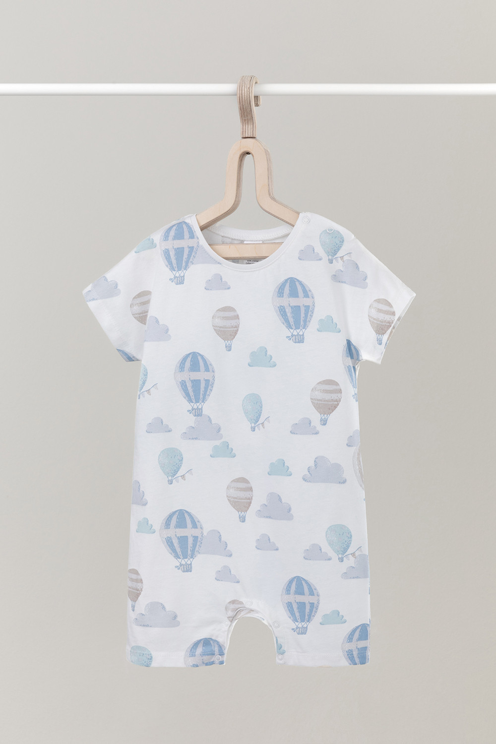 Лёгкий трикотажный песочник из высококачественного хлопка для мальчика. Застёгивается на кнопки на плече и по низу изделия. Оригинальная набивка выполнена из стойких текстильных гипоаллергенных красителей. Изделие сохраняет цвет и форму после многократных стирок.
