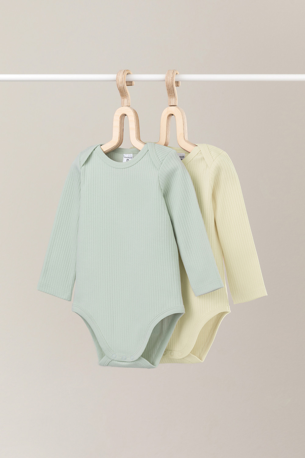 Боди для новорождённых из мягкого эластичного трикотажа, произведённого из натурального хлопка. В упаковке 2 штуки. Застёгиваются на кнопки по низу изделий. Все трикотажные полотна производятся в соответствии с нормами Швейцарского сертификата ЭкоТекс.