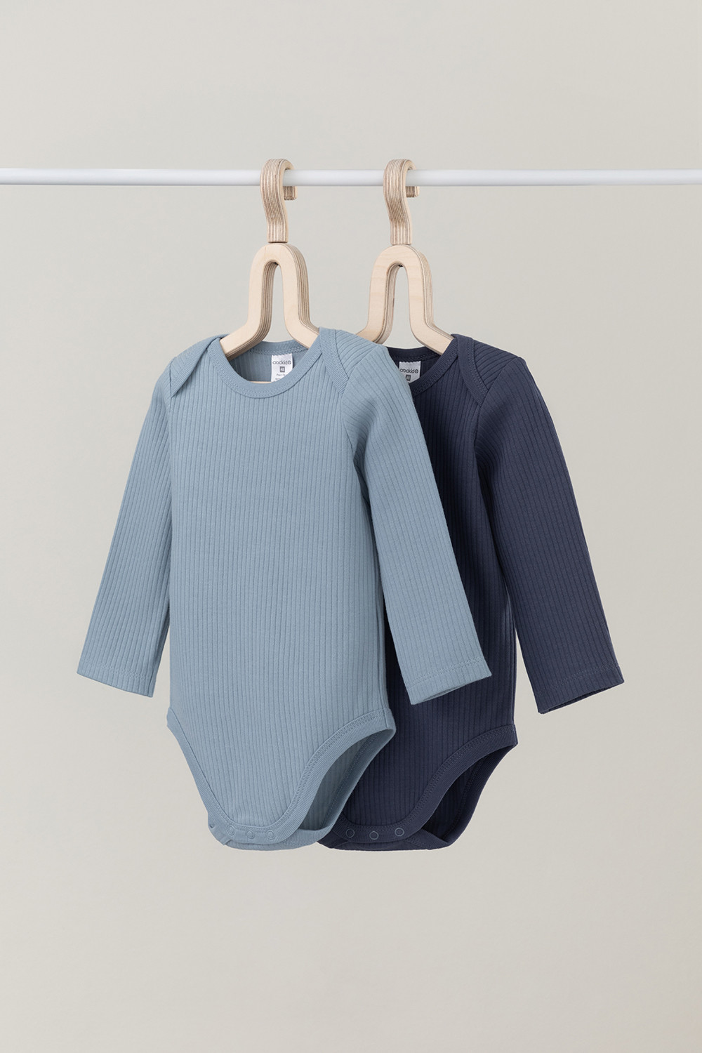 Боди для новорождённых из мягкого эластичного трикотажа, произведённого из натурального хлопка. В упаковке 2 штуки. Застёгиваются на кнопки по низу изделий. Все трикотажные полотна производятся в соответствии с нормами Швейцарского сертификата ЭкоТекс.