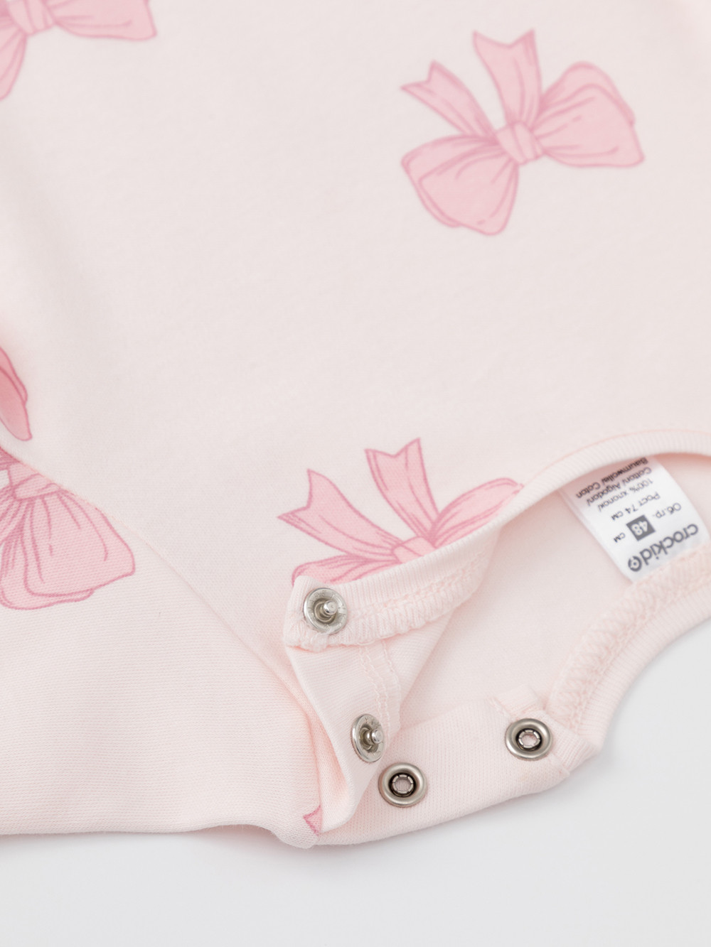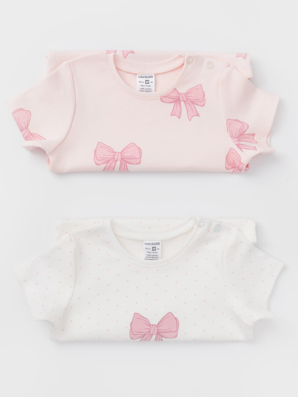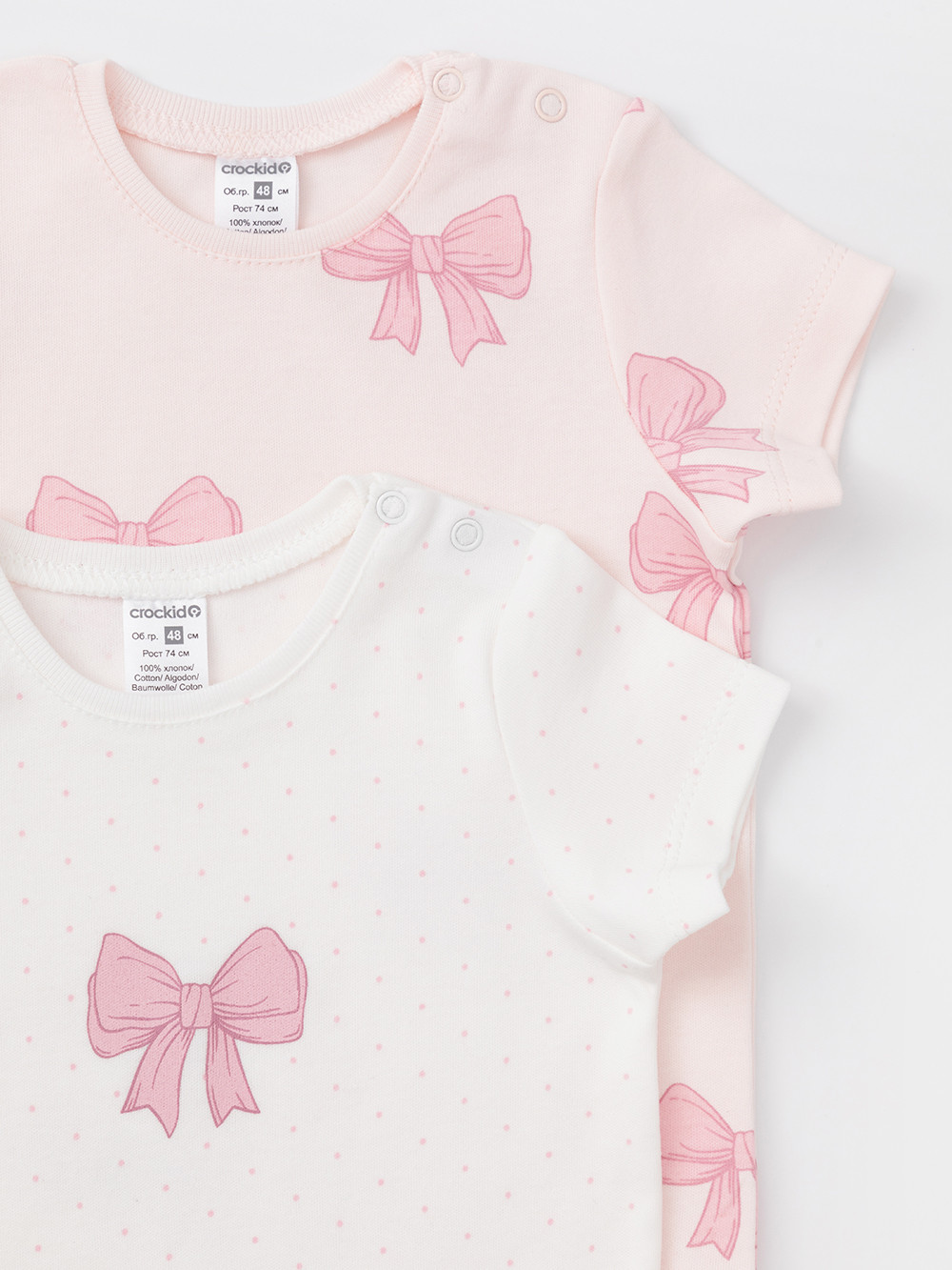 Боди для новорождённых из мягкого эластичного трикотажа, произведённого из натурального хлопка. В упаковке 2 штуки. Застёгиваются на кнопки на плече и по низу изделий. Оригинальная набивка и принт выполнены из стойких гипоаллергенных текстильных красителей. Все трикотажные полотна производятся в соответствии с нормами швейцарского сертификата ЭкоТекс.