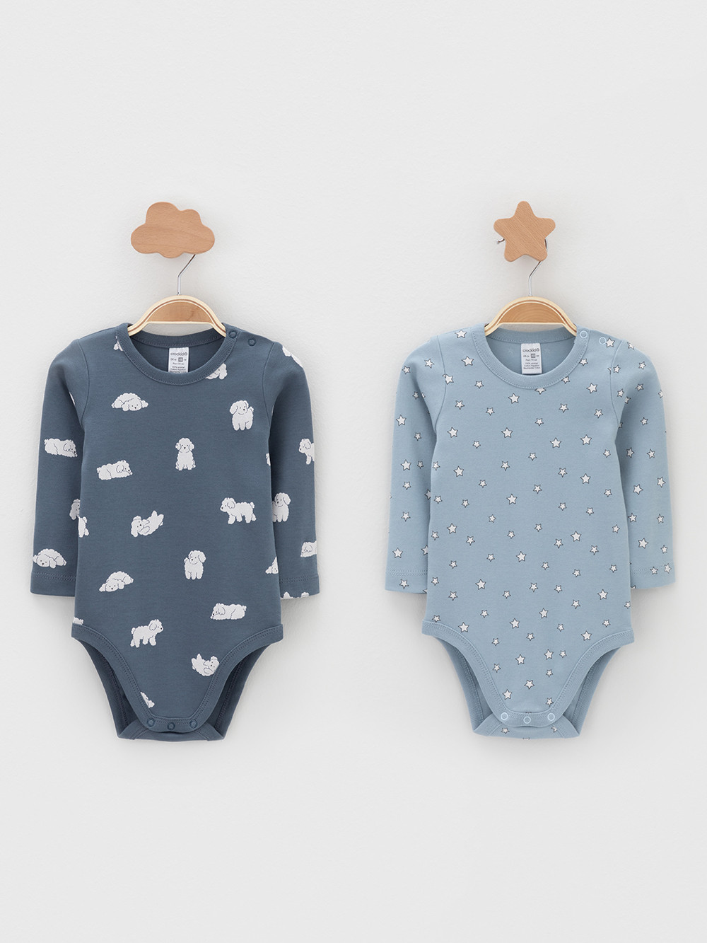 Боди для новорождённых из мягкого эластичного трикотажа, произведённого из натурального хлопка. В упаковке 2 штуки. Застёгиваются на кнопки на плече и по низу изделий. Оригинальная набивка и принт выполнены из стойких гипоаллергенных текстильных красителей. Все трикотажные полотна производятся в соответствии с нормами швейцарского сертификата ЭкоТекс.