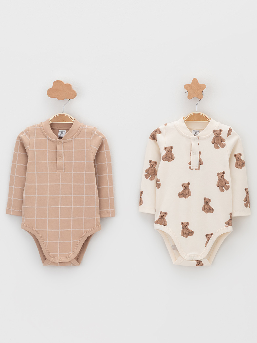 Боди для новорождённых из мягкого эластичного трикотажа, произведённого из натурального хлопка. В упаковке 2 штуки. Застёгиваются на кнопки спереди и по низу изделий. Оригинальная набивка выполнена из стойких гипоаллергенных текстильных красителей. Все трикотажные полотна производятся в соответствии с нормами швейцарского сертификата ЭкоТекс.