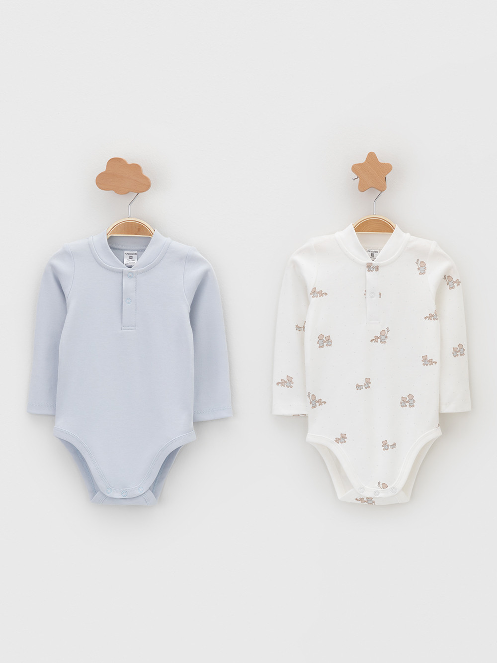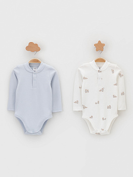 Боди для новорождённых из мягкого эластичного трикотажа, произведённого из натурального хлопка. В упаковке 2 штуки. Застёгиваются на кнопки спереди и по низу изделий. Оригинальная набивка выполнена из стойких гипоаллергенных текстильных красителей. Все трикотажные полотна производятся в соответствии с нормами швейцарского сертификата ЭкоТекс.