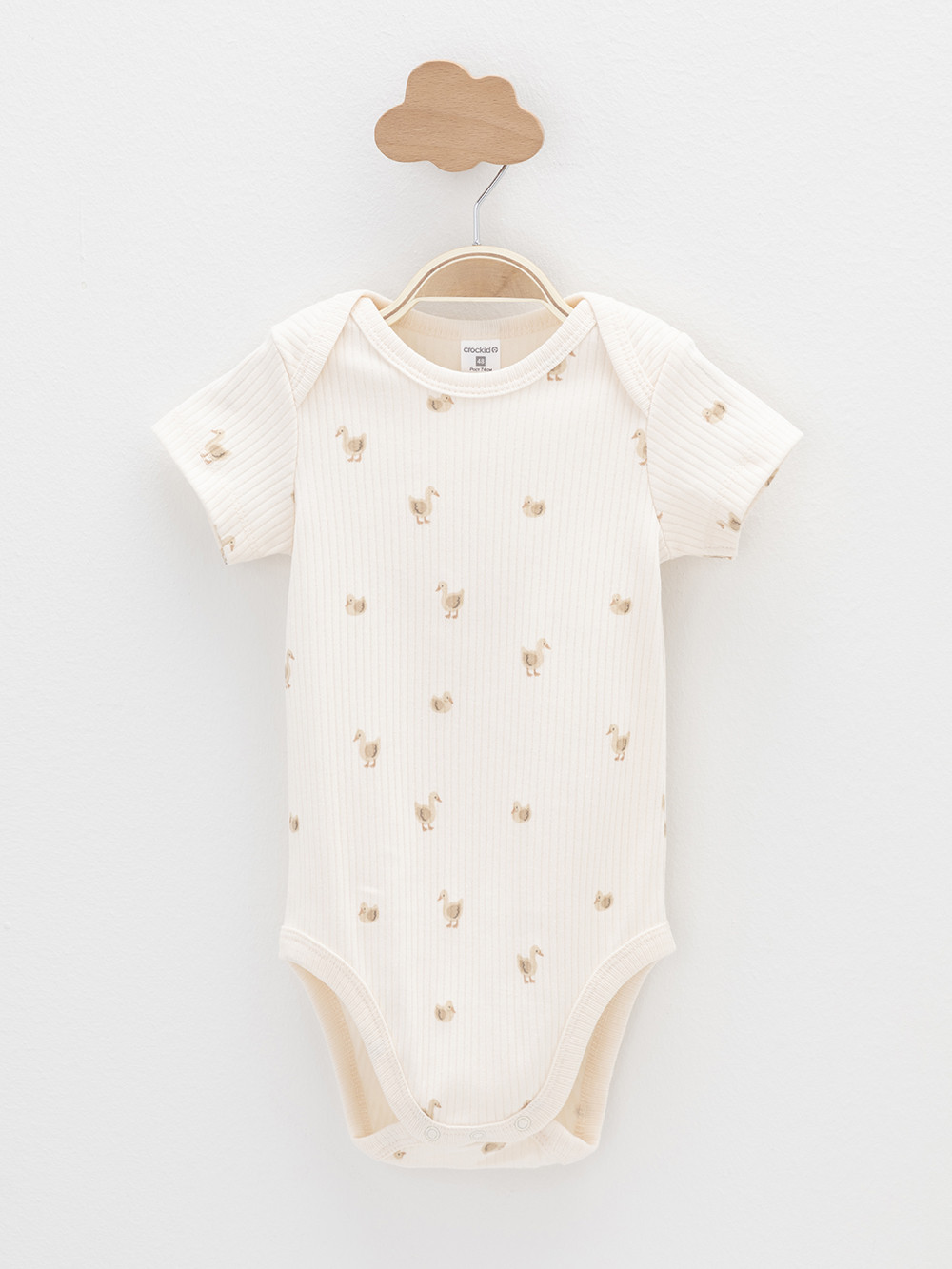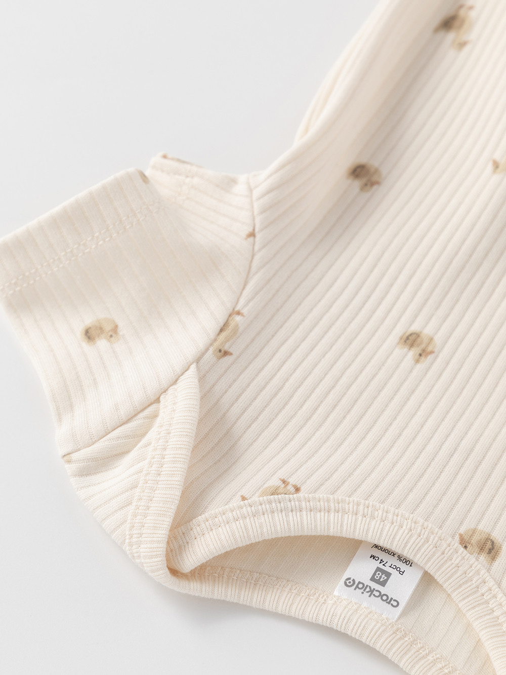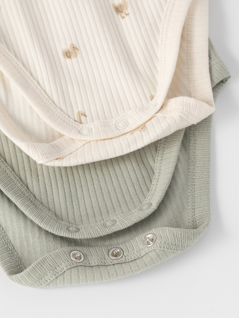Боди для новорождённых из мягкого эластичного трикотажа, произведённого из натурального хлопка. В упаковке 2 штуки. Застёгиваются на кнопки по низу изделий. Все трикотажные полотна производятся в соответствии с нормами швейцарского сертификата ЭкоТекс.