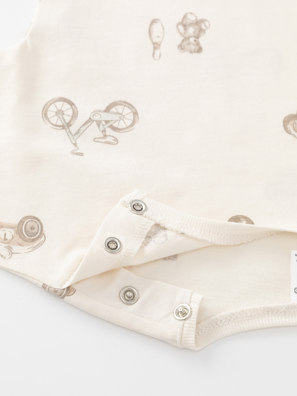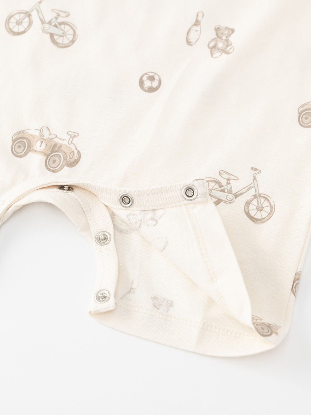 Лёгкий трикотажный песочник для мальчика из гладкого трикотажа супрем. В составе 100% натуральный хлопок высокого качества. Удобные застёжки на кнопки на плече и по низу изделия. Оригинальная набивка выполнена из стойких текстильных гипоаллергенных красителей. Изделие сохраняет цвет и форму после многократных стирок.