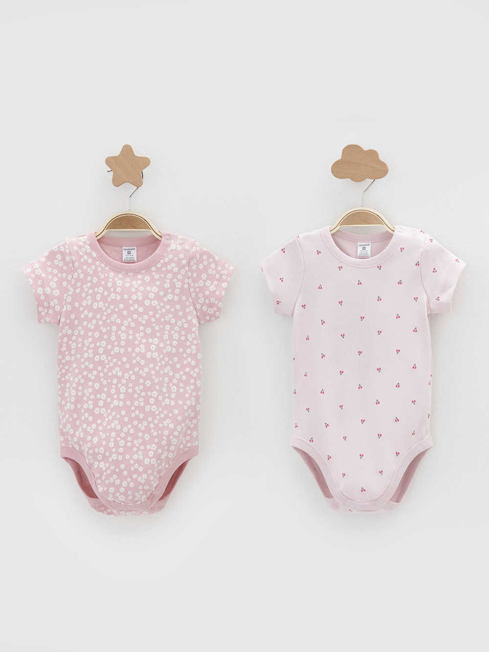 Боди для новорождённых из мягкого эластичного трикотажа, произведённого из натурального хлопка. В упаковке 2 штуки. Застёгиваются на кнопки на плече и по низу изделий. Оригинальная набивка выполнена из стойких гипоаллергенных текстильных красителей. Все трикотажные полотна производятся в соответствии с нормами швейцарского сертификата ЭкоТекс.