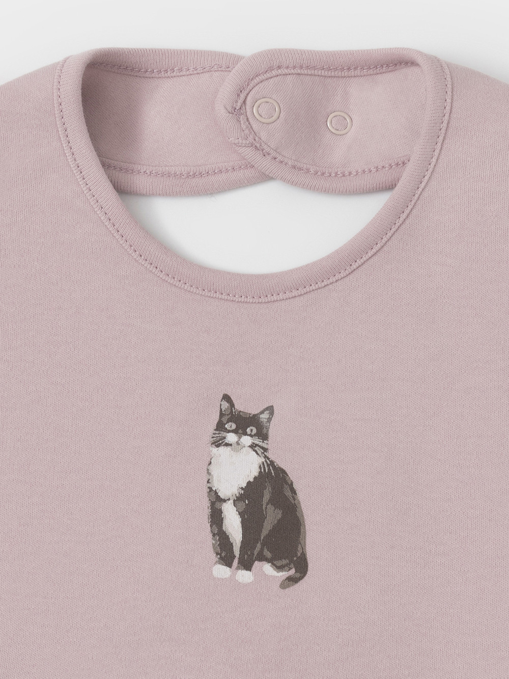 Нагрудник для новорождённых из мягкого эластичного трикотажа интерлок, произведённого из натурального хлопка. Застёгивается на кнопки. Украшен принтом. Все трикотажные полотна производятся в соответствии с нормами швейцарского сертификата ЭкоТекс.