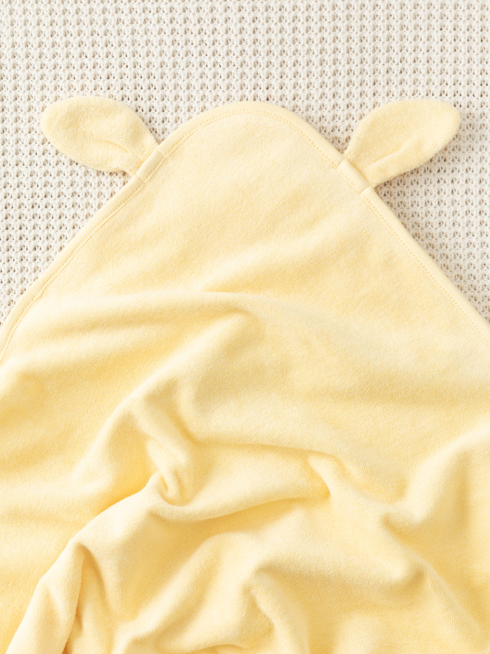 Махровое полотенце с уголком для новорождённых. Изготовлено из натурального хлопка. Размер 85*85 см. Все трикотажные полотна производятся в соответствии с нормами Швейцарского сертификата ЭкоТекс.