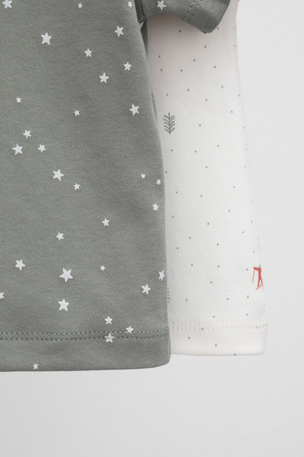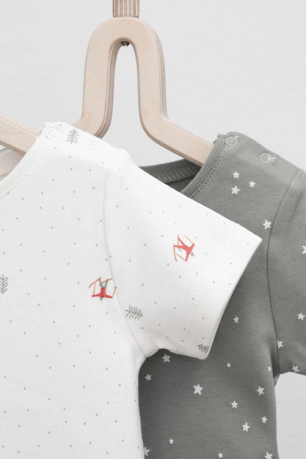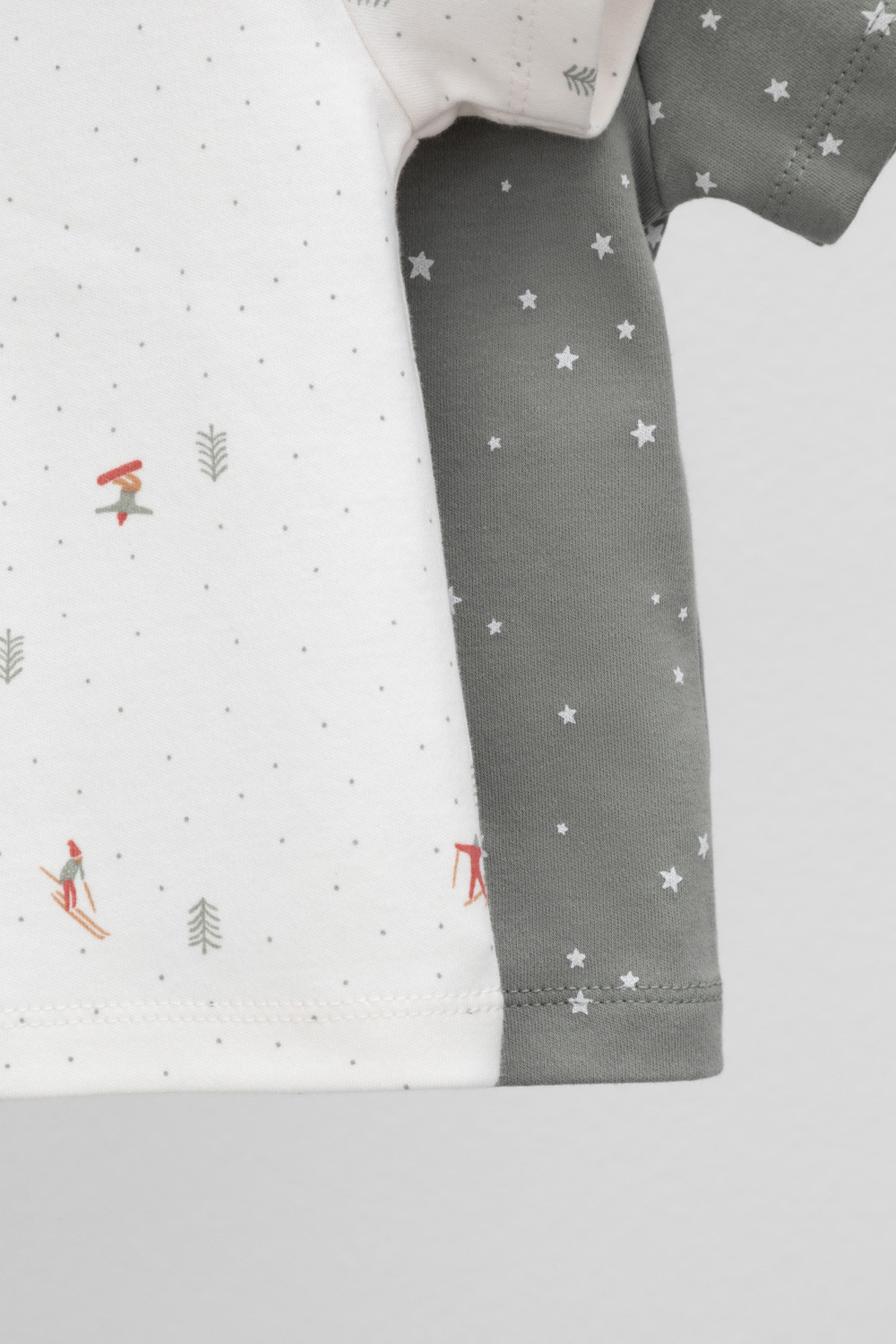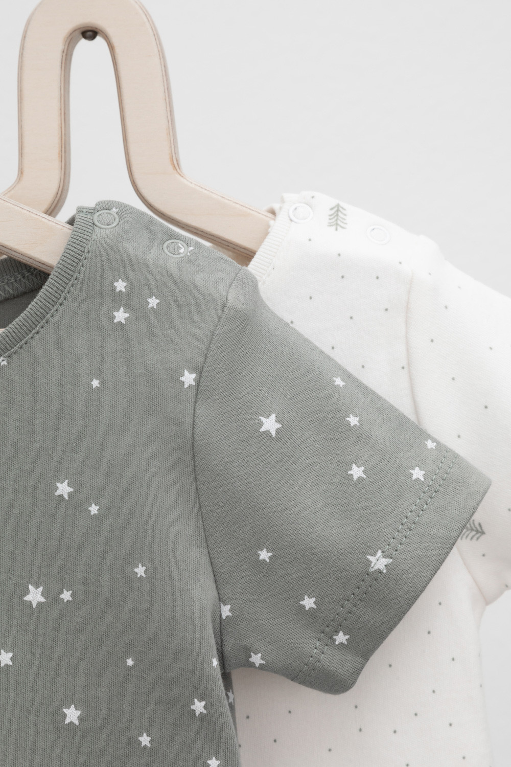 Футболки для мальчика в упаковке 2 шт из высококачественного трикотажного полотна. Оригинальная набивка выполнена из стойких гипоаллергенных текстильных красителей. Для удобства на плече застежка на кнопки.