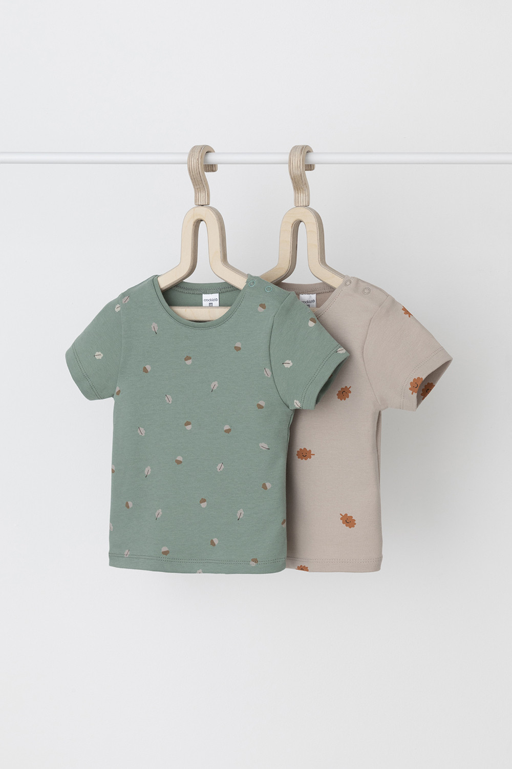 Футболки для мальчика в упаковке 2 шт из высококачественного трикотажного полотна. Оригинальная набивка выполнена из стойких гипоаллергенных текстильных красителей. Для удобства на плече застежка на кнопки.