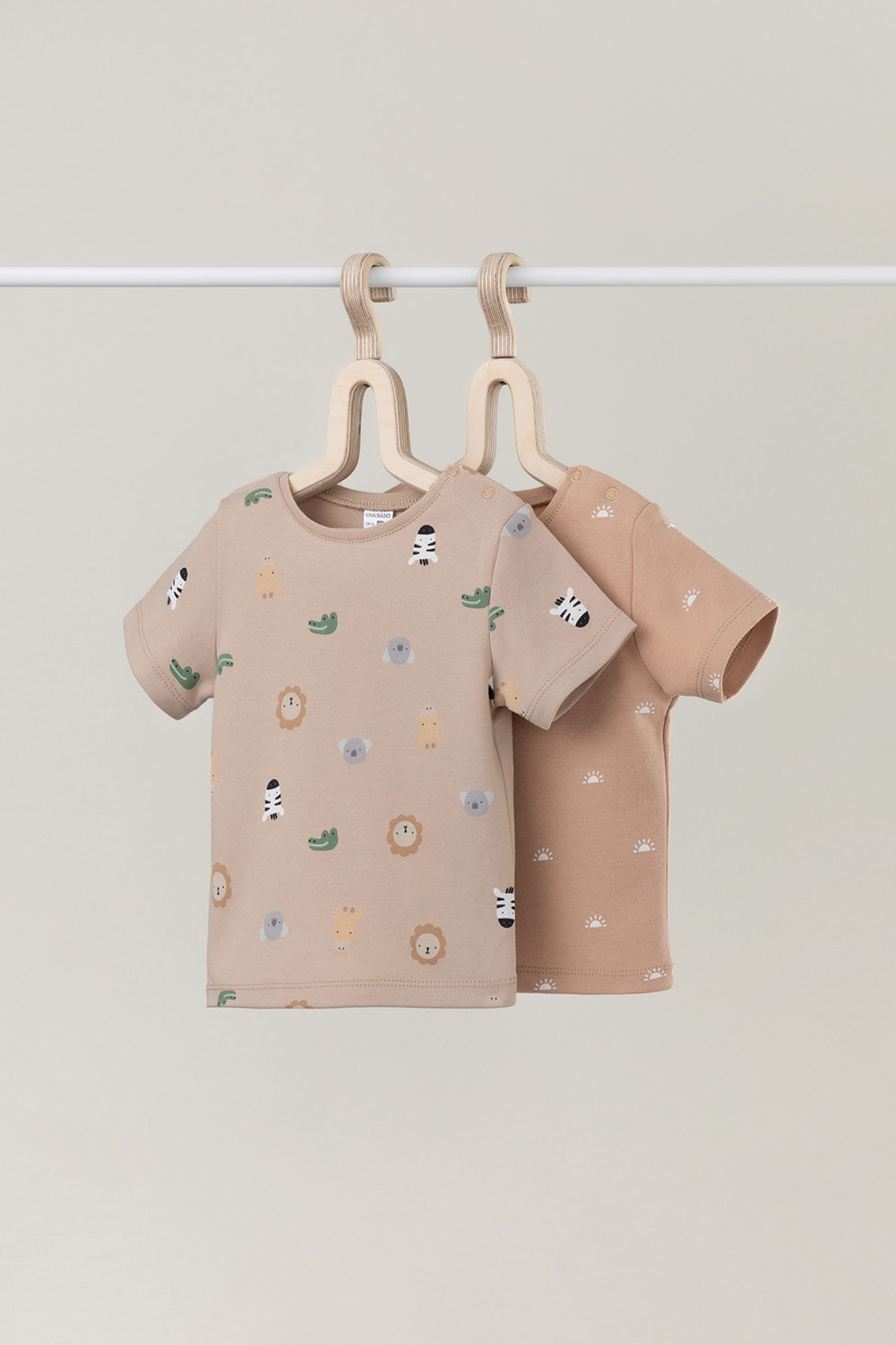 Футболки для мальчика из высококачественного трикотажа интерлок. В упаковке 2 штуки. Для удобства на плече застёжка на кнопки. Оригинальная набивка выполнена из стойких гипоаллергенных текстильных красителей. Все трикотажные полотна производятся в соответствии с нормами Швейцарского сертификата ЭкоТекс.