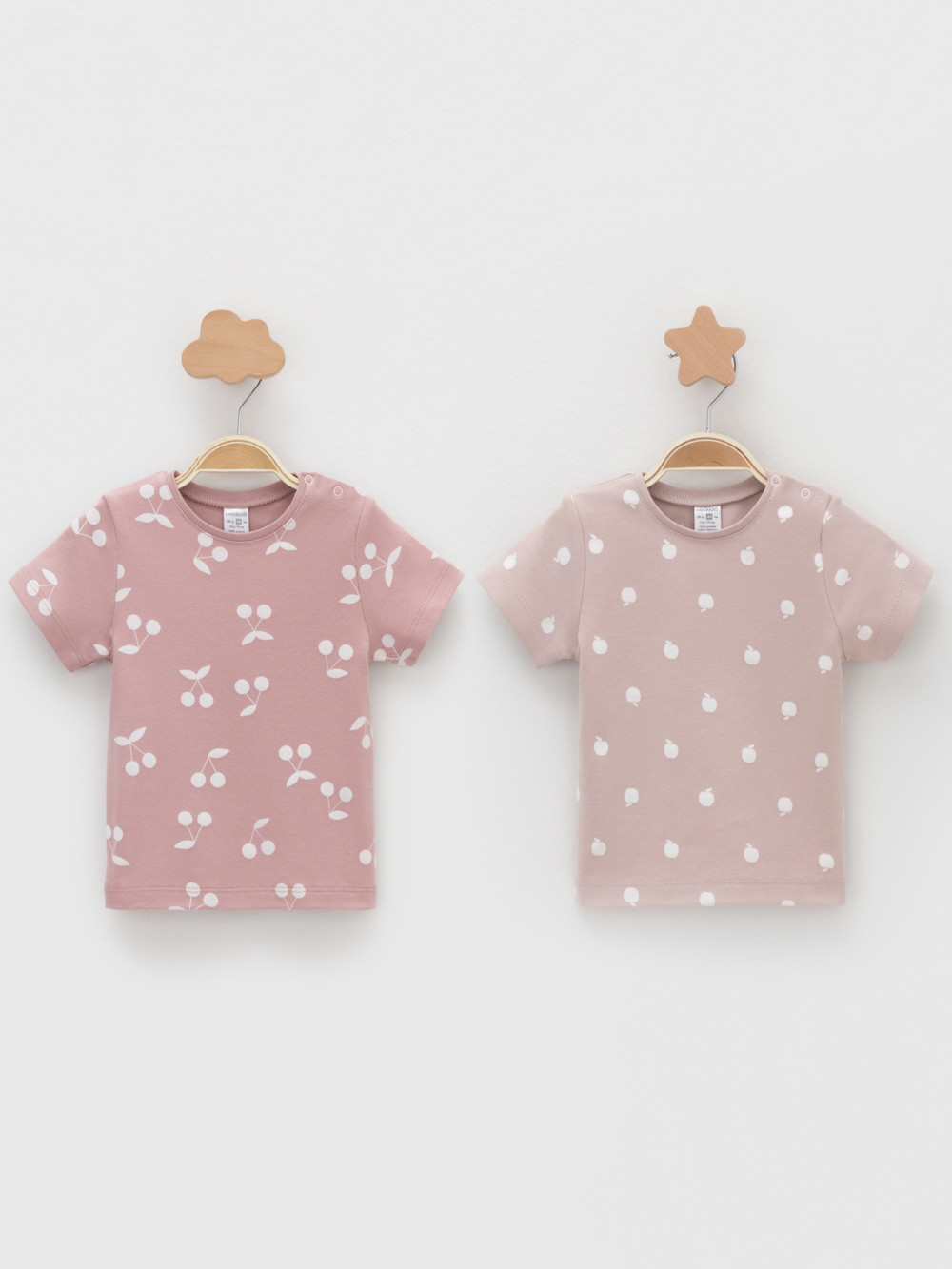 Футболки для девочки из высококачественного трикотажа интерлок. В упаковке 2 штуки. Для удобства на плече застёжка на кнопки. Оригинальная набивка выполнена из стойких гипоаллергенных текстильных красителей. Все трикотажные полотна производятся в соответствии с нормами швейцарского сертификата ЭкоТекс.