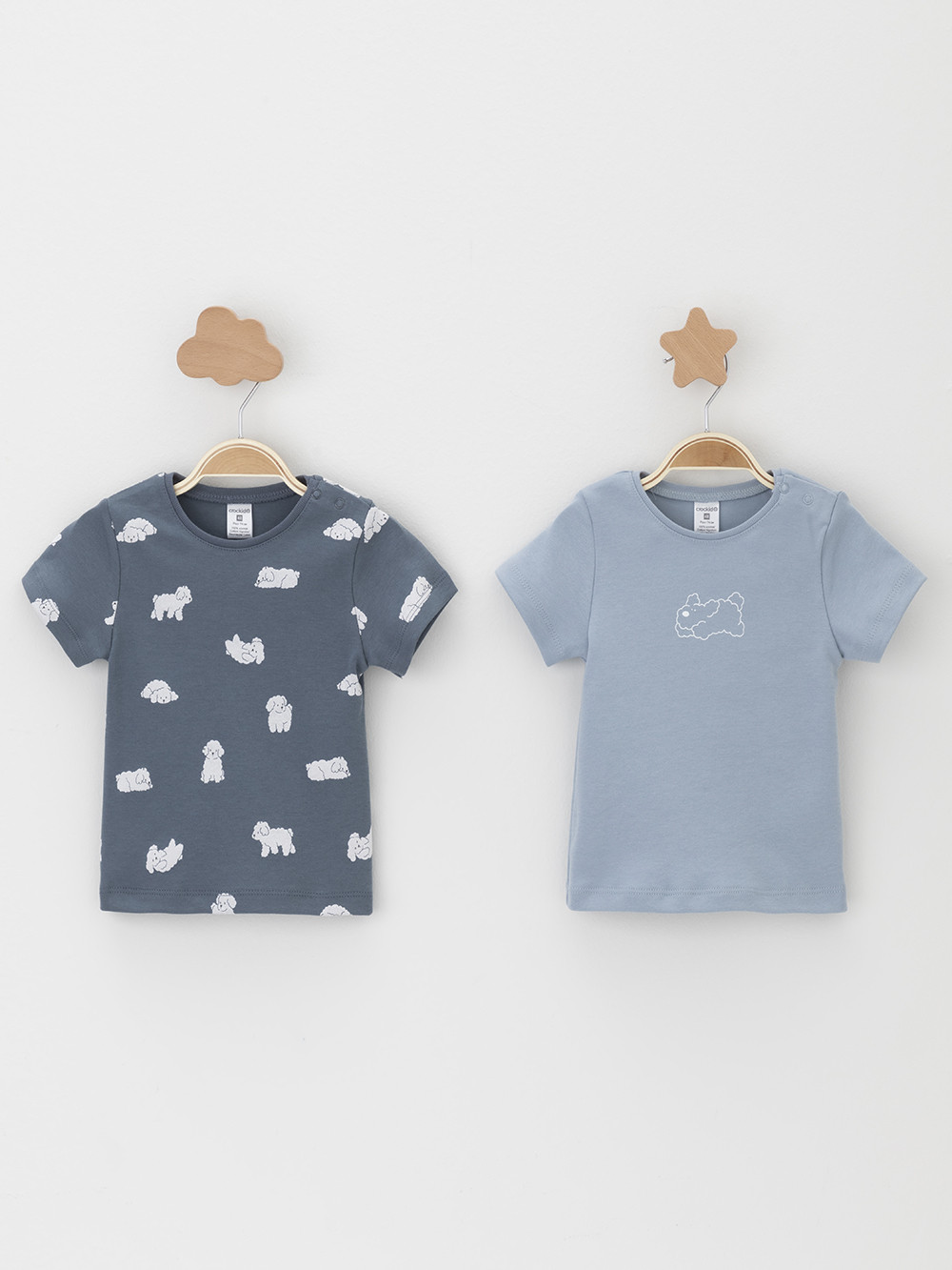 Футболки для мальчика из высококачественного трикотажа интерлок. В упаковке 2 штуки. Для удобства на плече застёжка на кнопки. Оригинальная набивка и принт выполнены из стойких гипоаллергенных текстильных красителей. Все трикотажные полотна производятся в соответствии с нормами швейцарского сертификата ЭкоТекс.