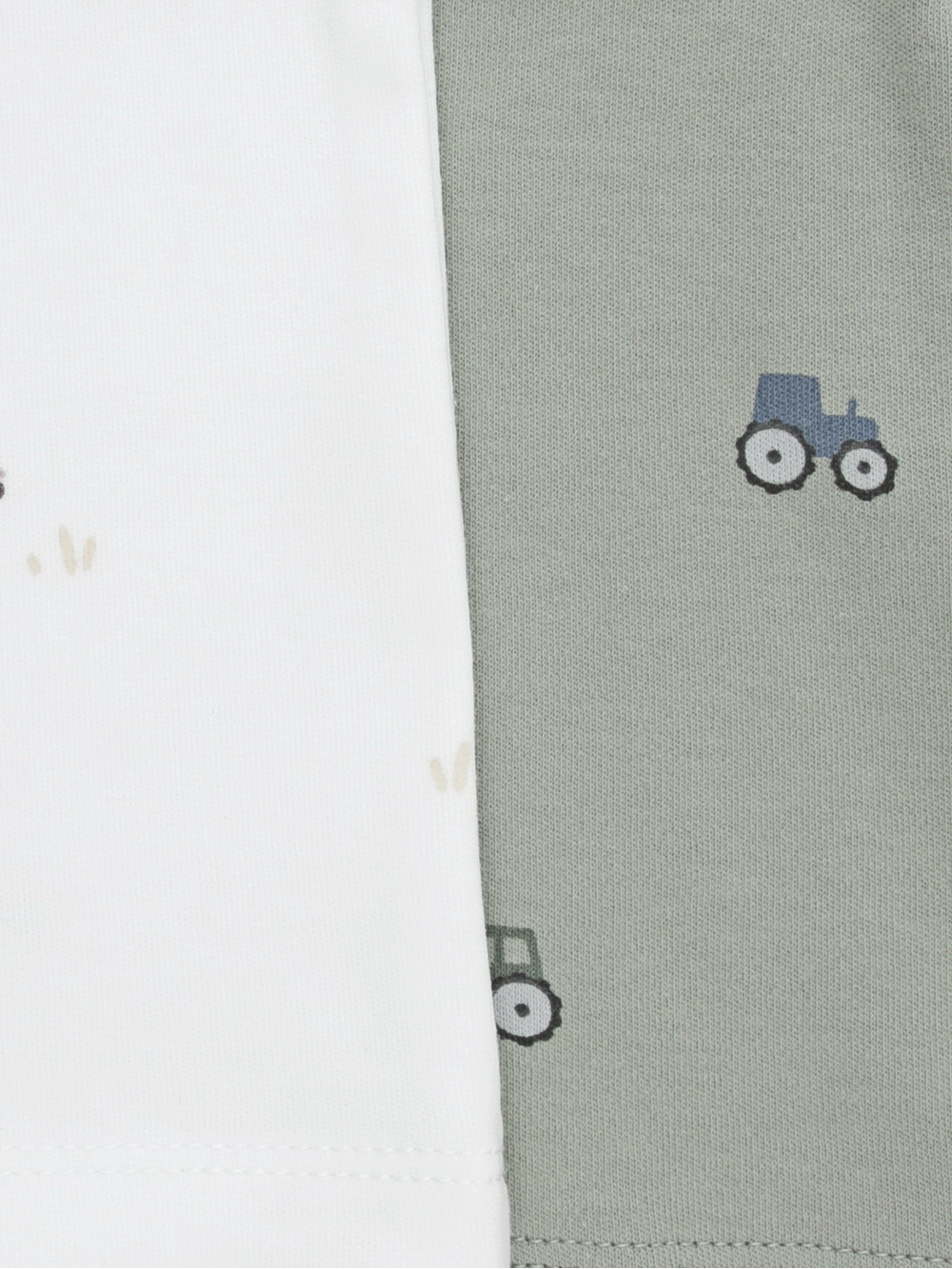 Футболки для мальчика из высококачественного трикотажа, произведённого из натурального хлопка. В упаковке 2 штуки. Для удобства на плече застёжка на кнопки. Оригинальная набивка и принт выполнены из стойких гипоаллергенных текстильных красителей. Все трикотажные полотна производятся в соответствии с нормами швейцарского сертификата ЭкоТекс.