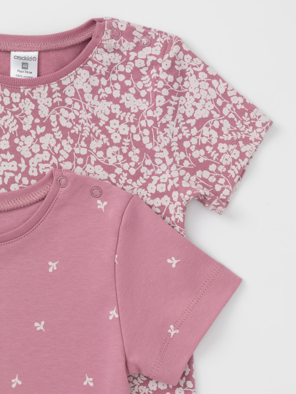 Футболки для девочки из высококачественного трикотажа, произведённого из натурального хлопка. В упаковке 2 штуки. Для удобства на плече застёжка на кнопки. Оригинальная набивка выполнена из стойких гипоаллергенных текстильных красителей. Все трикотажные полотна производятся в соответствии с нормами швейцарского сертификата ЭкоТекс.