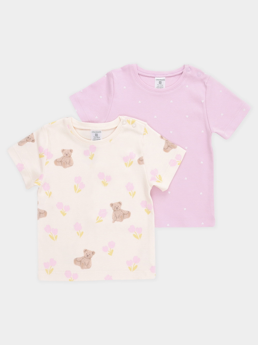 Футболки для девочки из высококачественного трикотажа, произведённого из натурального хлопка. В упаковке 2 штуки. Для удобства на плече застёжка на кнопки. Оригинальная набивка выполнена из стойких гипоаллергенных текстильных красителей. Все трикотажные полотна производятся в соответствии с нормами швейцарского сертификата ЭкоТекс.