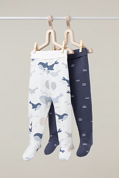Ползунки для новорождённых из мягкого эластичного трикотажа интерлок, произведённого из натурального хлопка. В упаковке 2 штуки. Пояс на резинке. Оригинальная набивка выполнена из стойких гипоаллергенных текстильных красителей. Все трикотажные полотна производятся в соответствии с нормами Швейцарского сертификата ЭкоТекс.