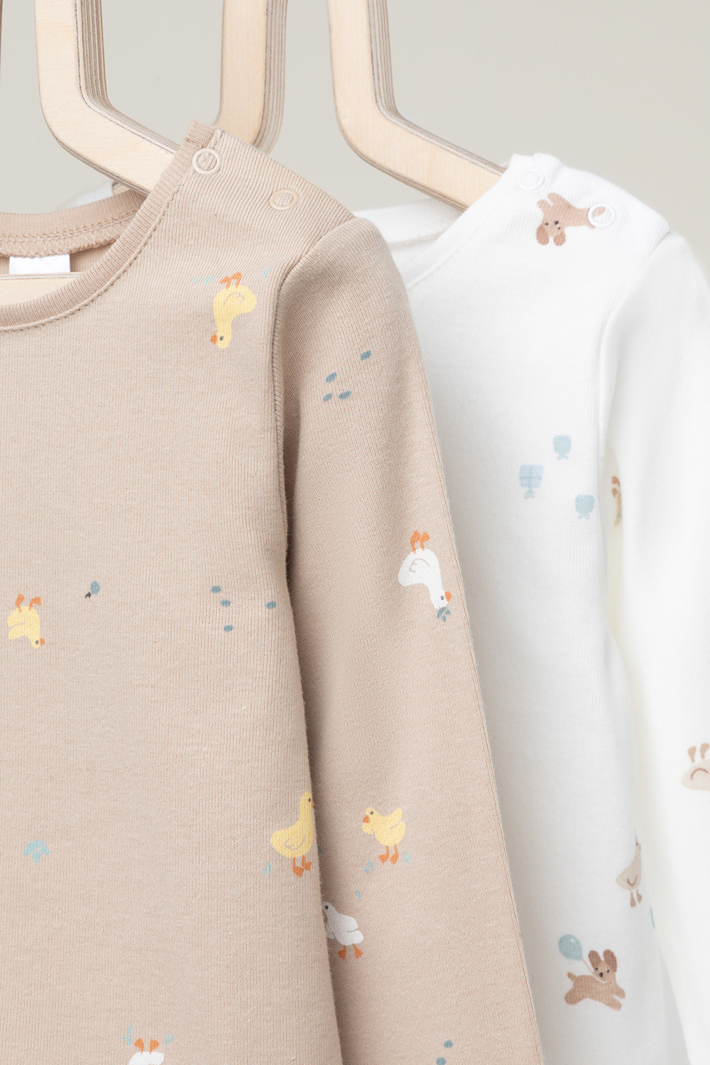 Джемперы лонгсливы для новорождённых из мягкого эластичного трикотажа интерлок, произведённого из натурального хлопка. В упаковке 2 штуки. Застёгиваются на плече на кнопки. Оригинальная набивка выполнена из стойких гипоаллергенных текстильных красителей. Все трикотажные полотна производятся в соответствии с нормами Швейцарского сертификата ЭкоТекс.
