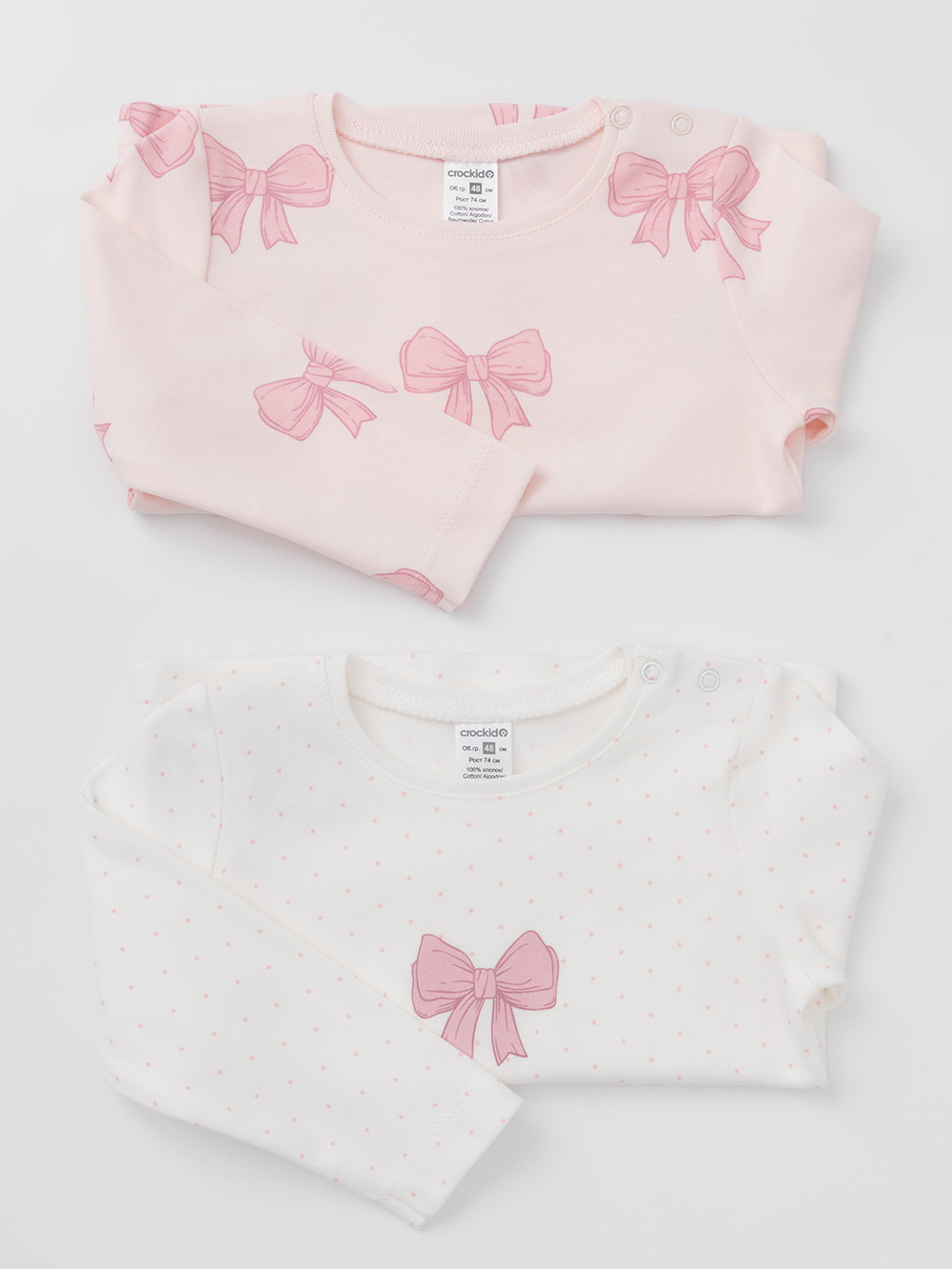 Джемперы лонгсливы для новорождённых из мягкого эластичного трикотажа интерлок, произведённого из натурального хлопка. В упаковке 2 штуки. Застёгиваются на плече на кнопки. Оригинальная набивка и принт выполнены из стойких гипоаллергенных текстильных красителей. Все трикотажные полотна производятся в соответствии с нормами швейцарского сертификата ЭкоТекс.