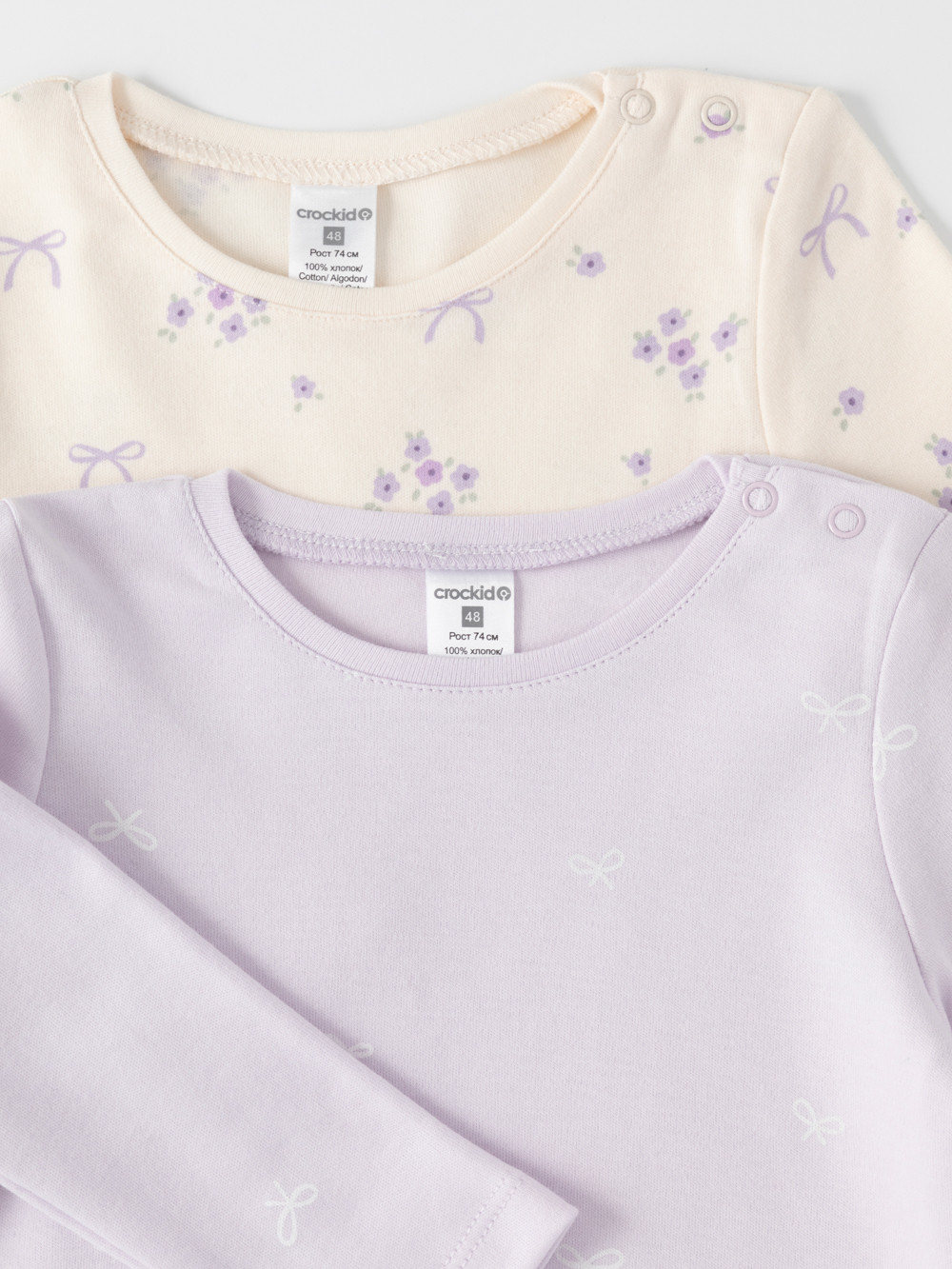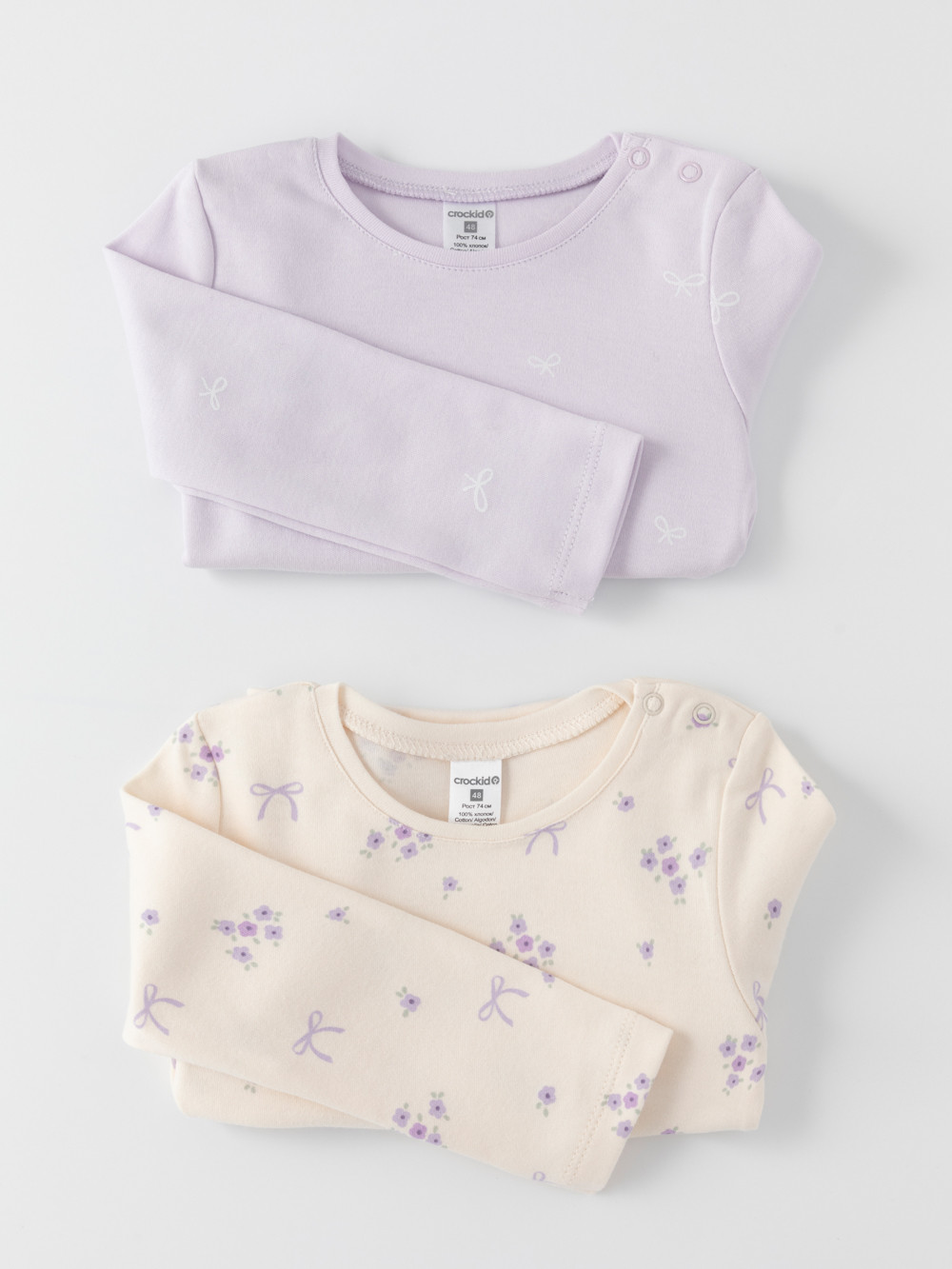 Джемперы лонгсливы для новорождённых из мягкого эластичного трикотажа интерлок, произведённого из натурального хлопка. В упаковке 2 штуки. Застёгиваются на плече на кнопки. Оригинальная набивка выполнена из стойких гипоаллергенных текстильных красителей. Все трикотажные полотна производятся в соответствии с нормами швейцарского сертификата ЭкоТекс.