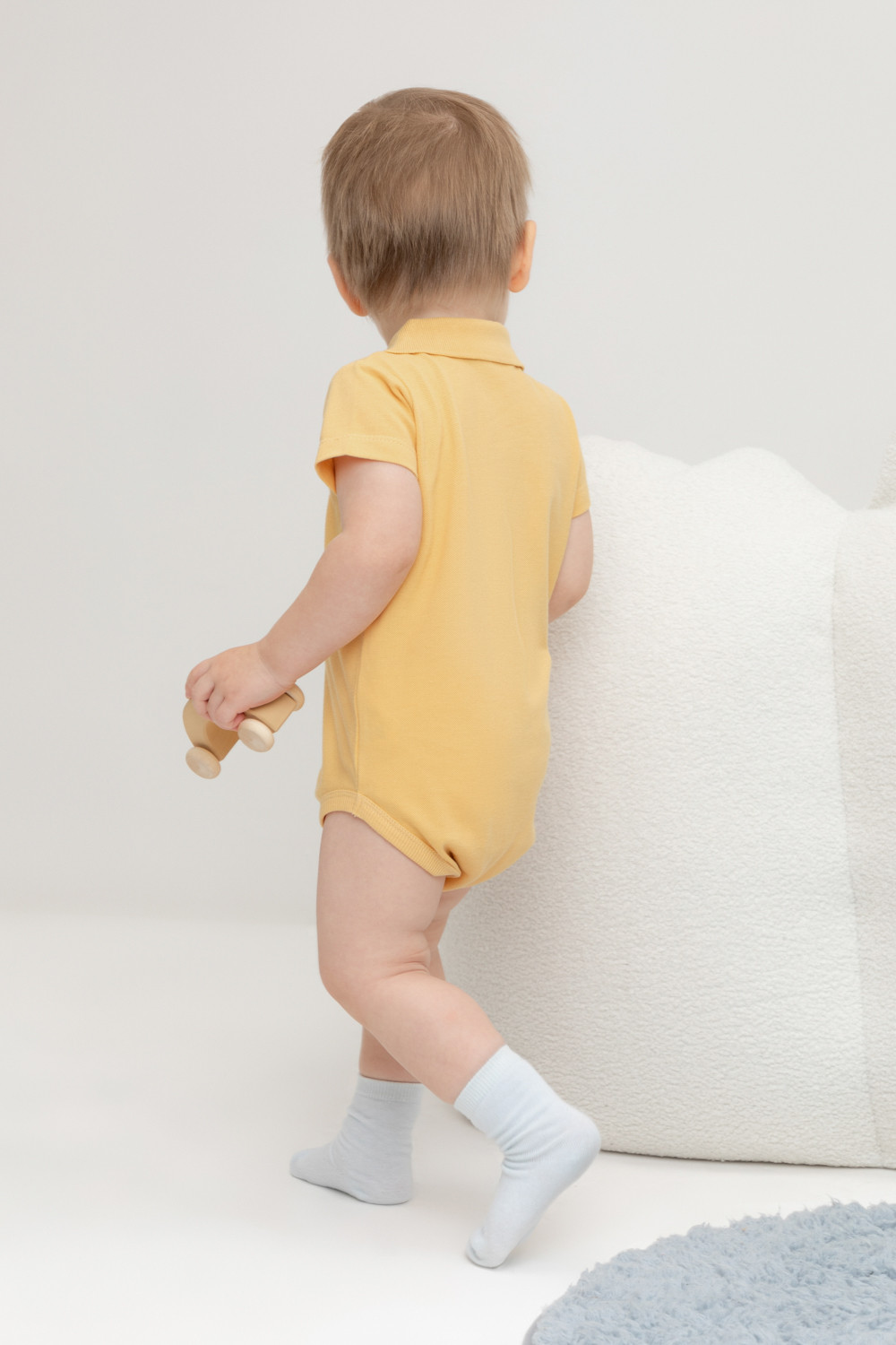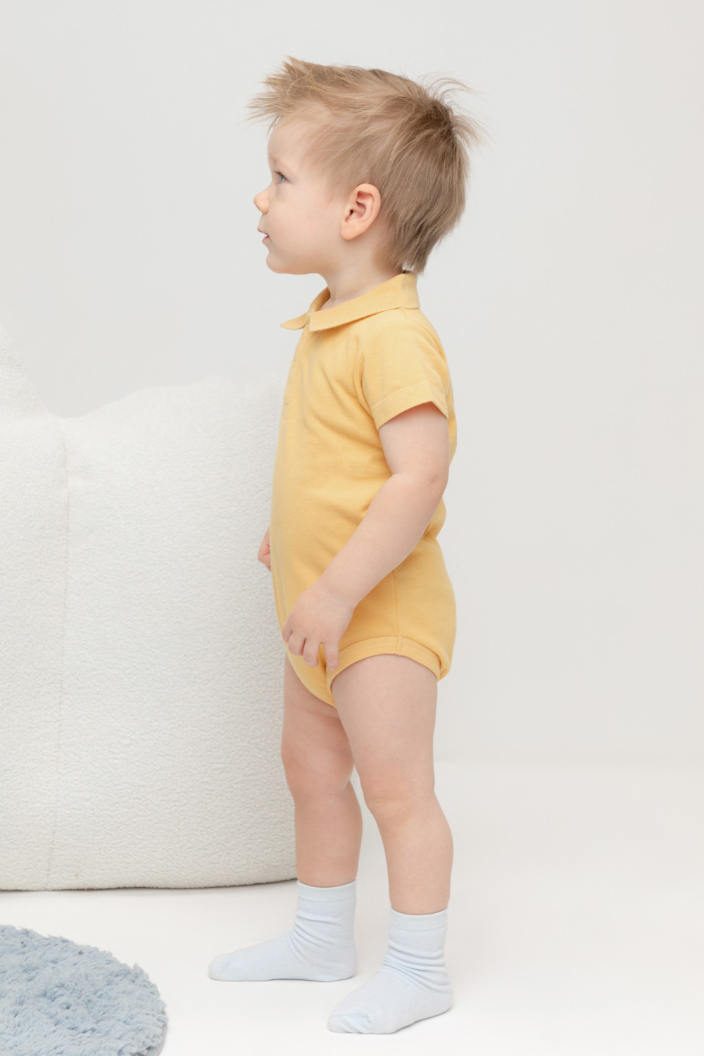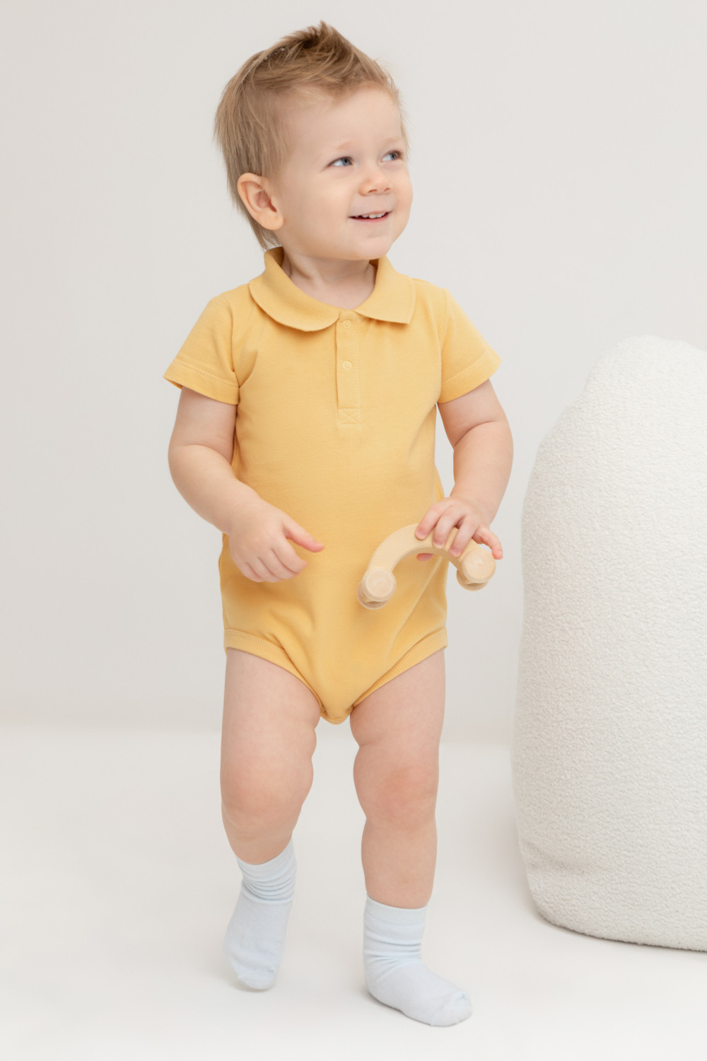 Боди с воротником для мальчика из трикотажного полотна пике. Вязаный воротник. Удобная застежка спереди.