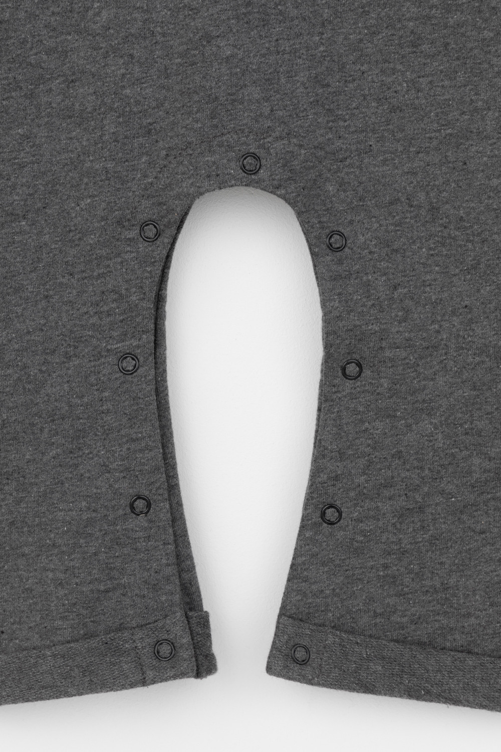 Полукомбинезон детский из меланжевого петельчатого футера. Удобная застежка на лямках. Застежка на кнопки по шаговому шву.