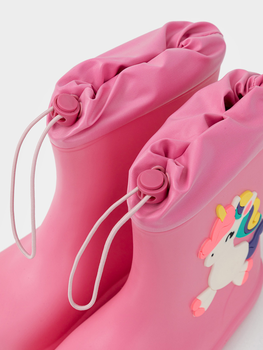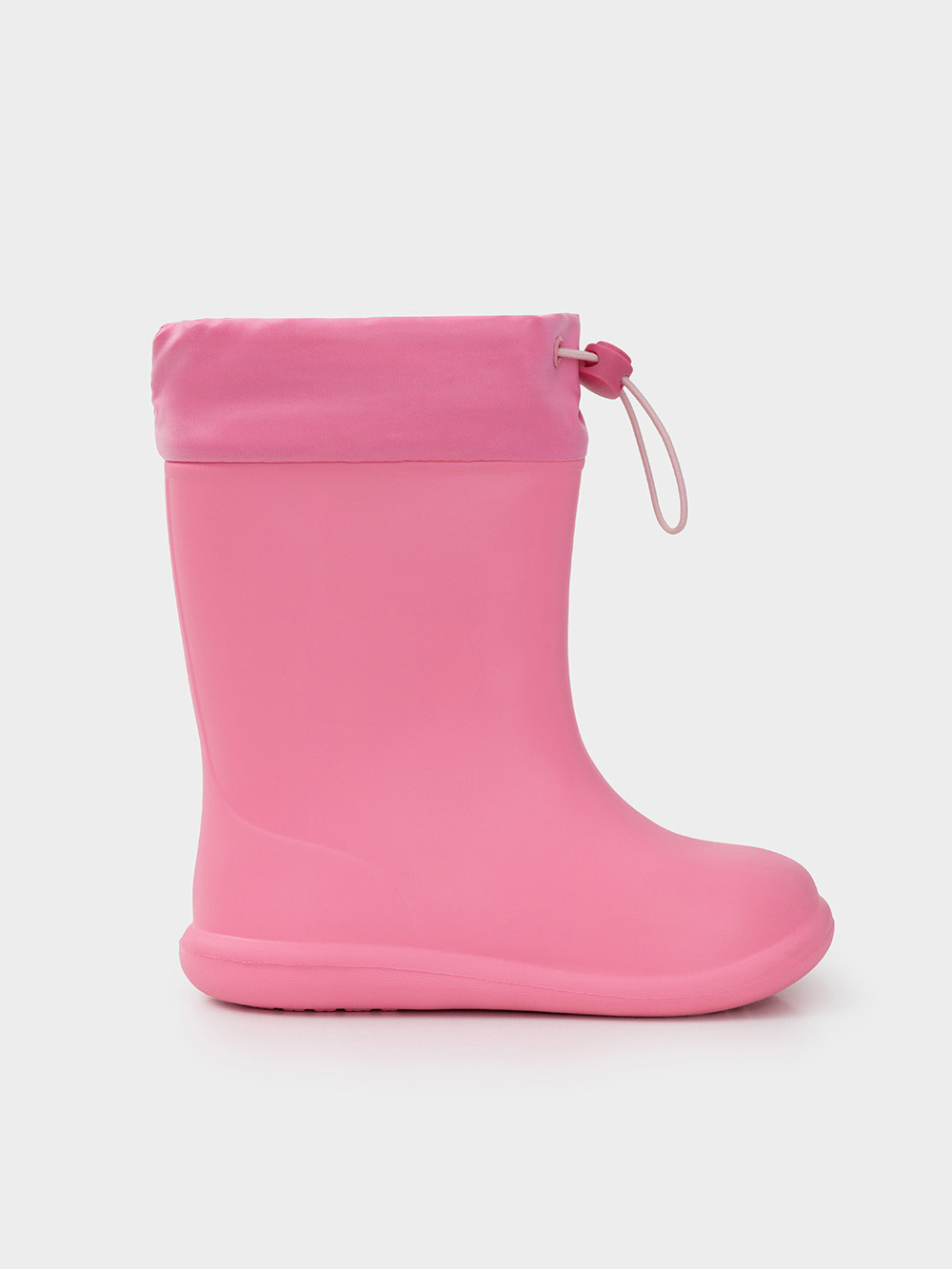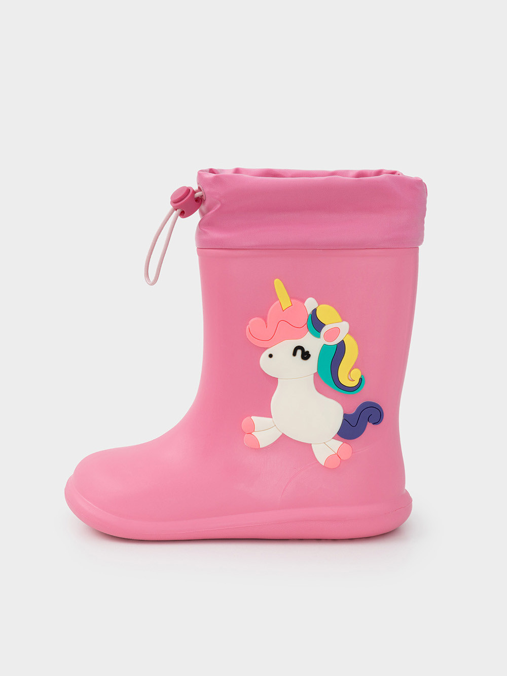 Лёгкие резиновые сапоги изготовлены из прочного материала ЭВА. Подошва не скользит и устойчива к истиранию. Сверху сапожки имеют влагозащитные манжеты, которые затягиваются на шнурок с фиксатором и предотвращают попадание воды и брызг внутрь обуви. Стелька в размерах 24 и 25,5 состоит