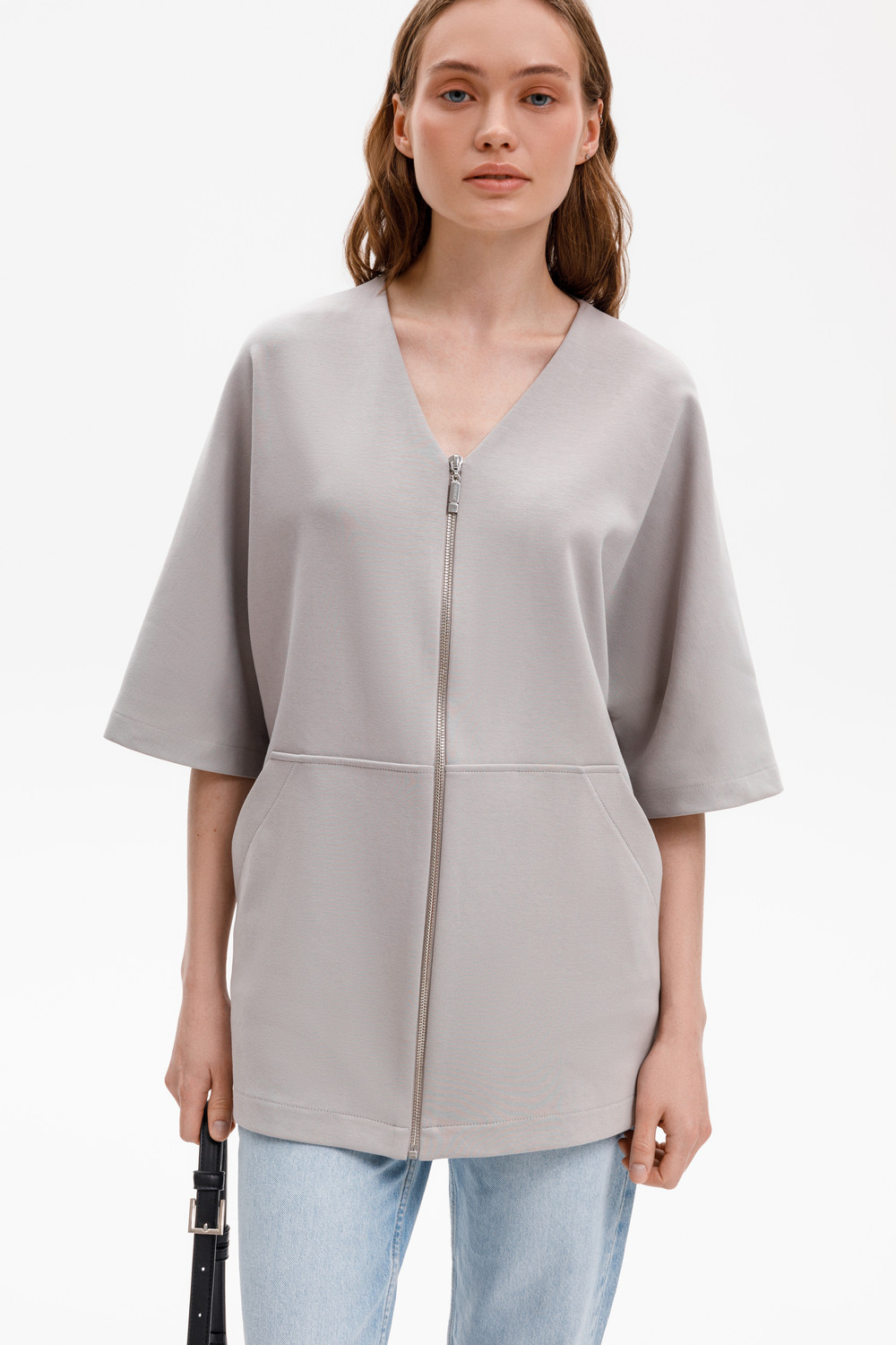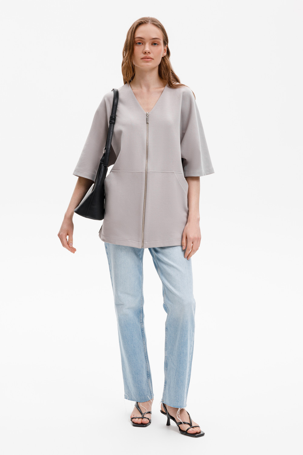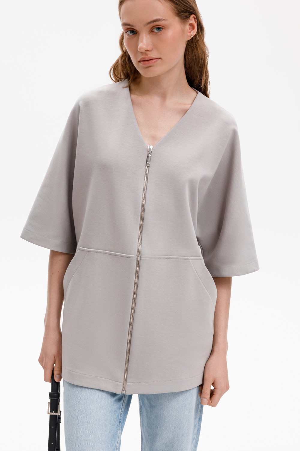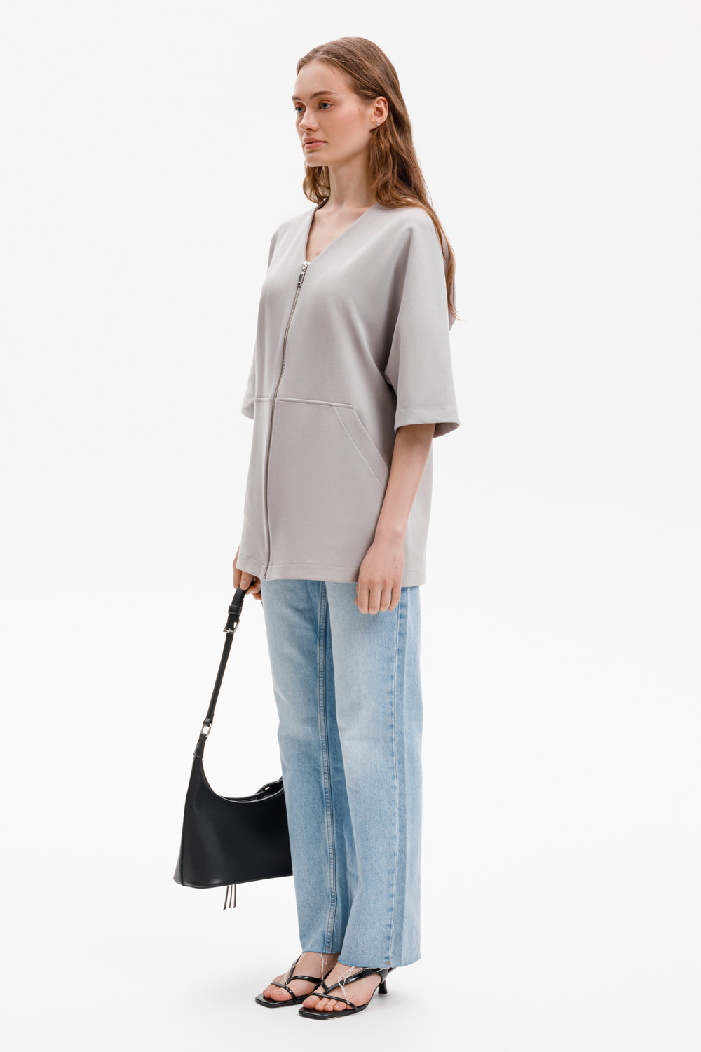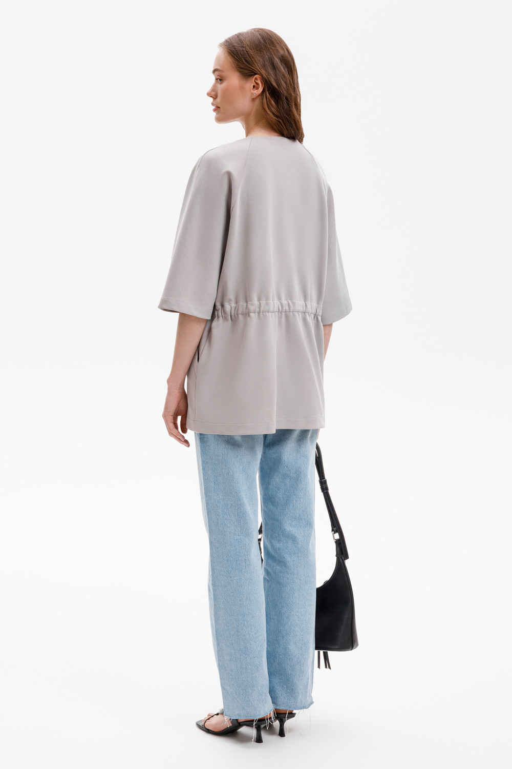 Удлиненный жакет со спущенным рукавом из премиального трикотажа DOUBLE FACE становится началом многослойных образов. Его лаконичный дизайн дополнен объемными карманами. Мягкая сборка на эластичную тесьму по спинке придает аккуратный объем.