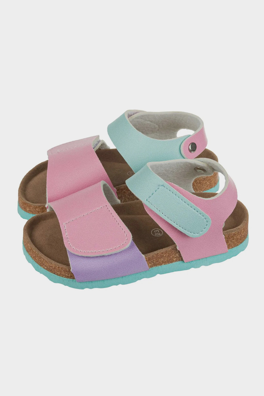 Верх выполнен из искусственной кожи. Подсводник и жесткая пятка для правильного развития стопы. Мягкий валик вокруг щиколотки препятствует натиранию. Два велкро надежно зафиксируют сандаль на ноге. Износостойкая подошва.